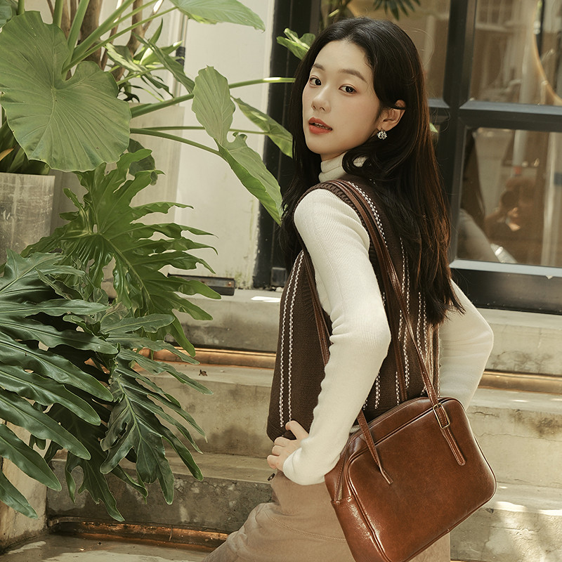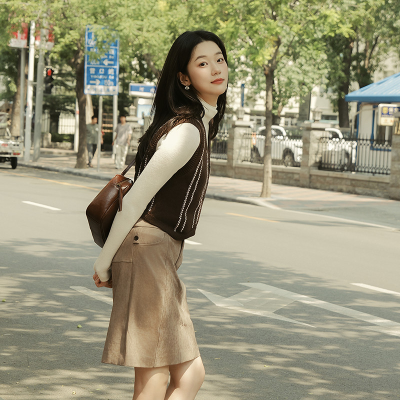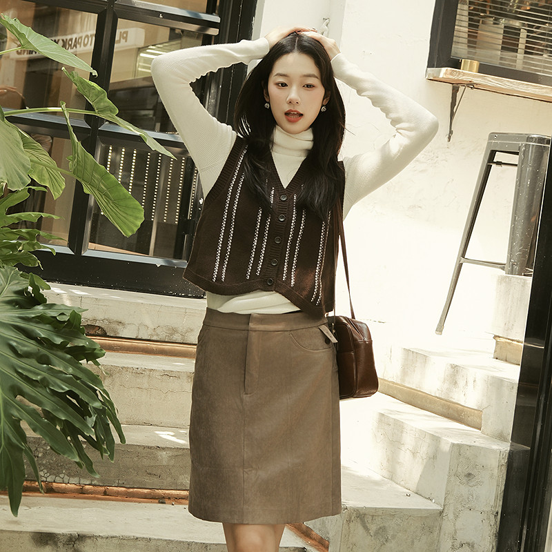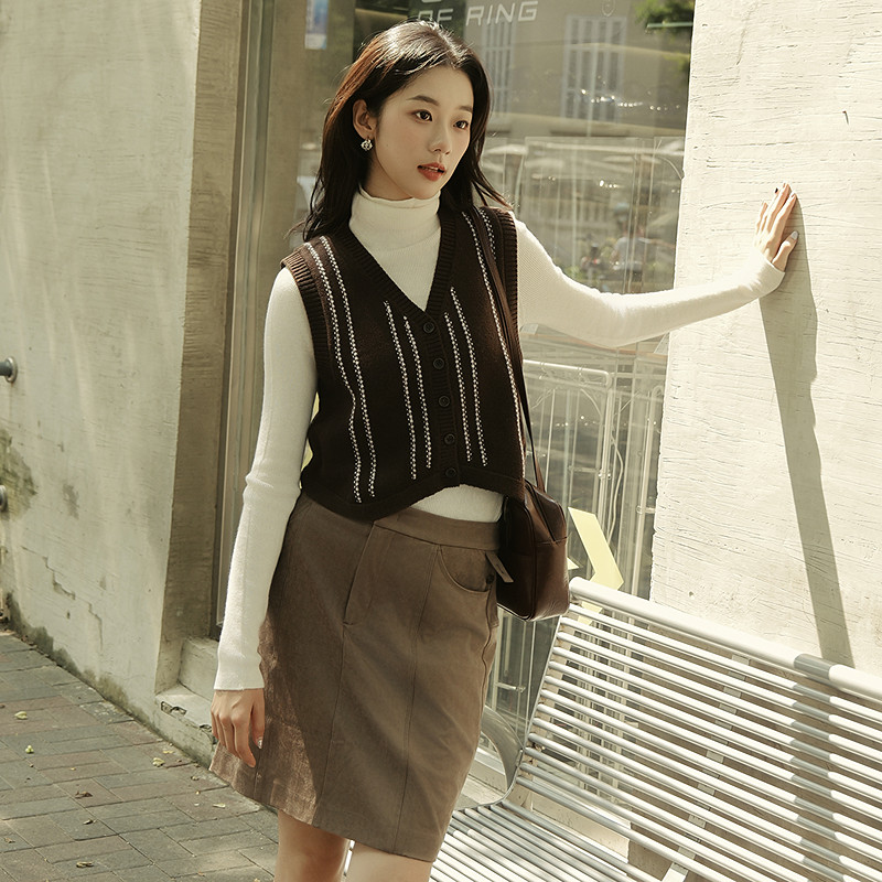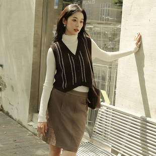 MSLAN摩卡秋日 复古条纹宽松V领背心重工叠穿费尔岛马夹
