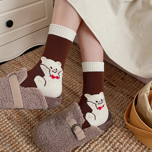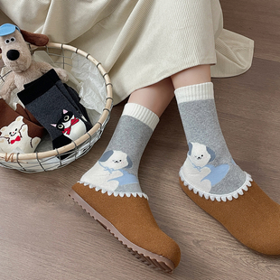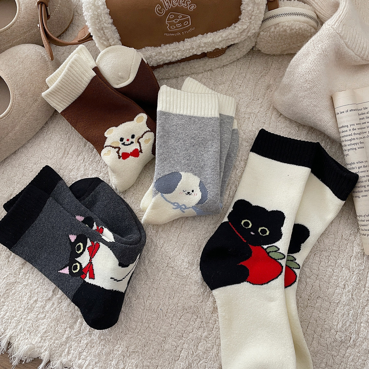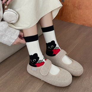 女袜子中筒纯棉毛巾底秋冬保暖加绒加厚2025新款 可爱女生小猫长袜