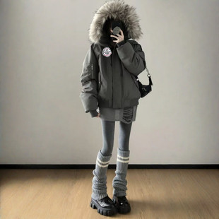 工装 复古夹棉加厚棉服女秋冬新款 派克服外套潮 胖mm美式 300斤大码
