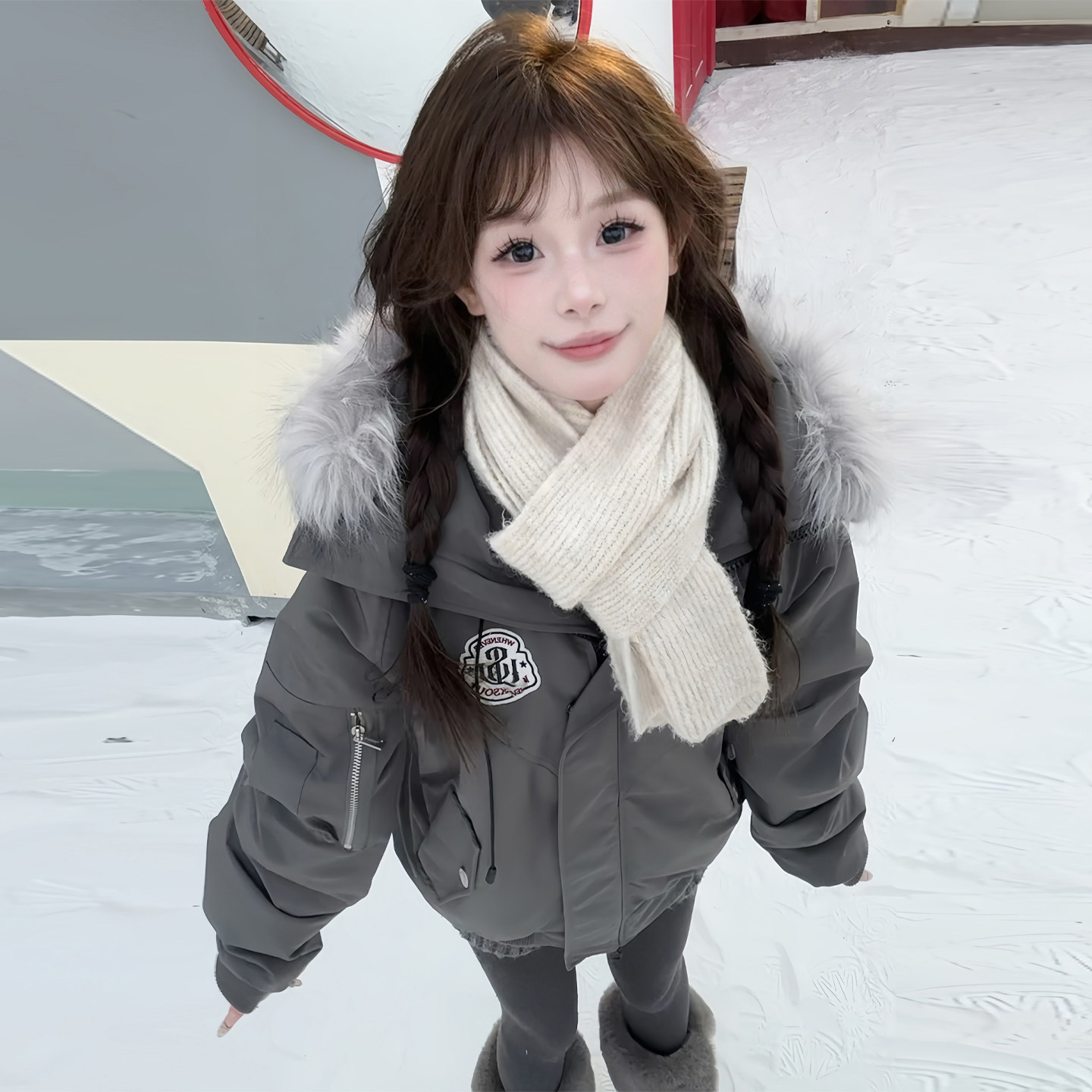 宽松连帽毛绒棉服女保暖加厚独特漂亮小棉袄外套 胖mm韩版 大码 女装