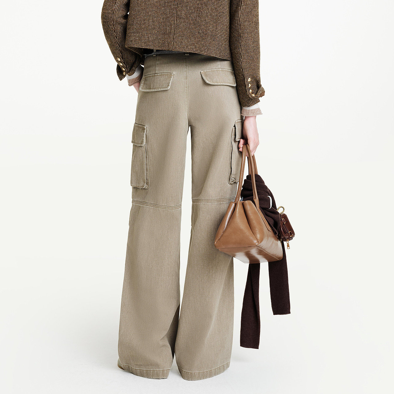 长裤 商场同款 休闲风特殊剪裁口袋阔腿工装 款 女 摩萨克冬季