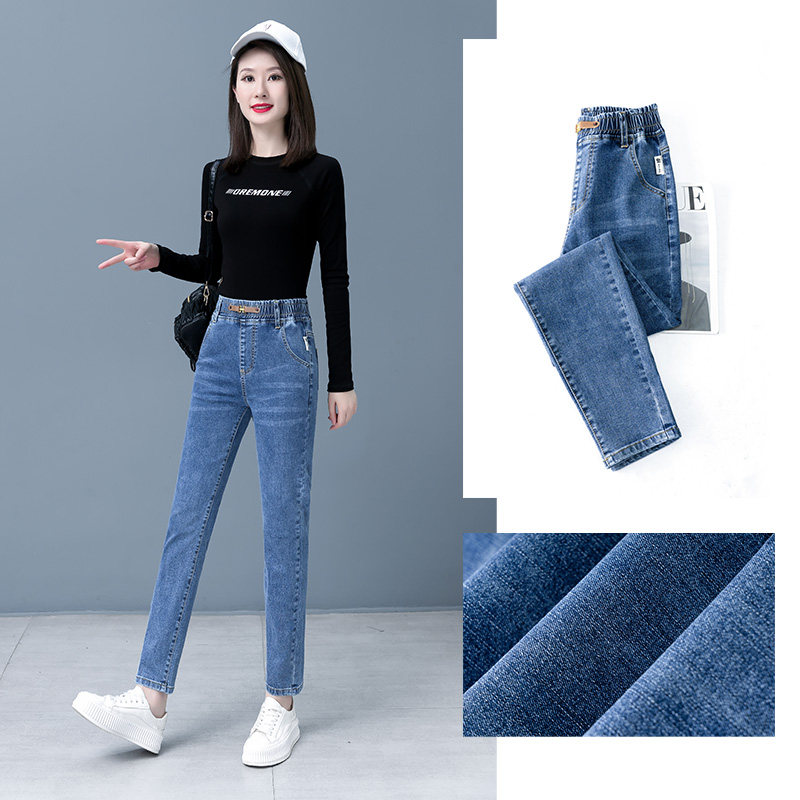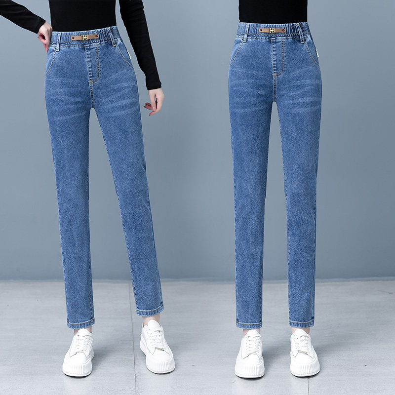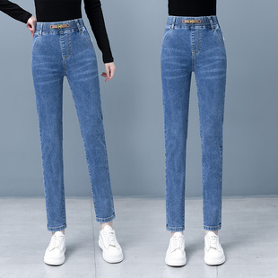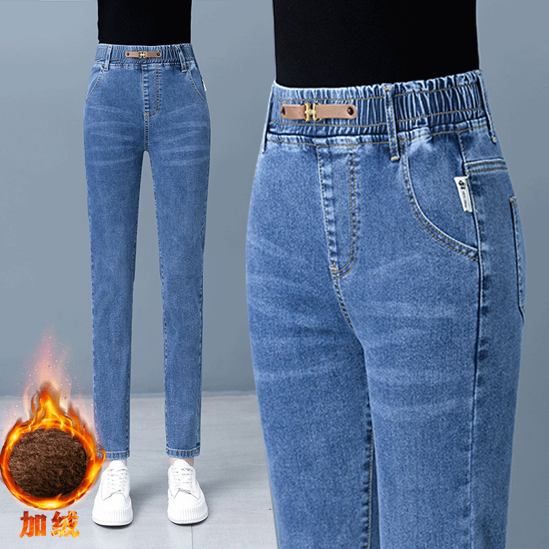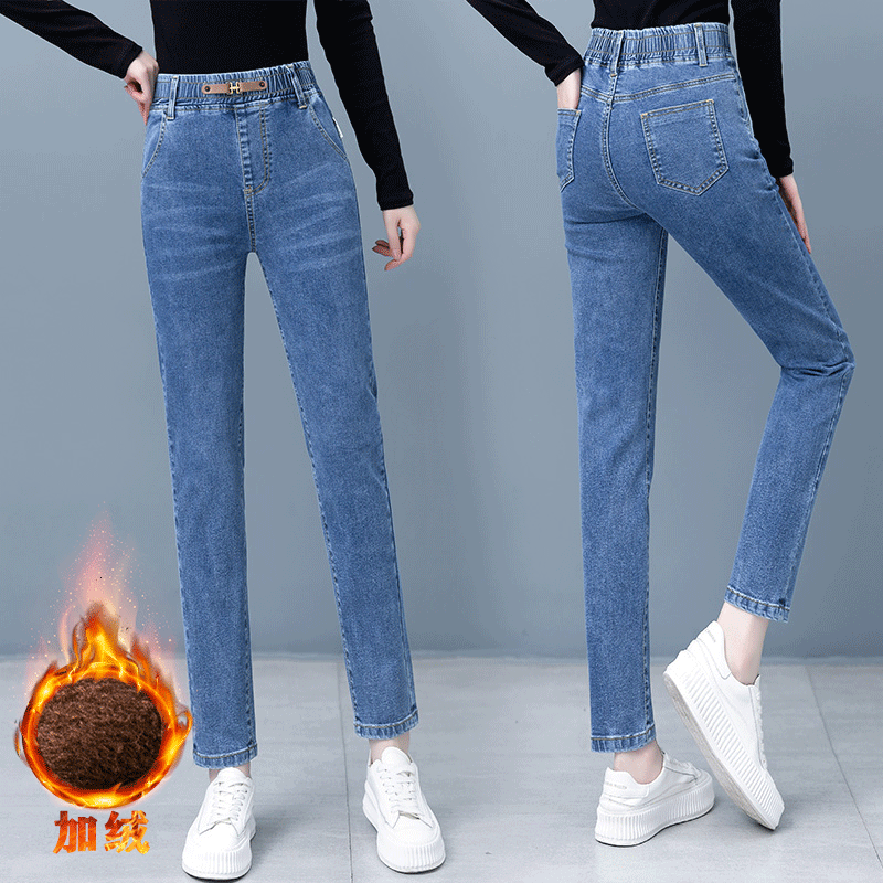 女弹力显瘦小脚铅笔裤 加绒加厚牛仔裤 高腰松紧腰单裤 2025秋冬新款