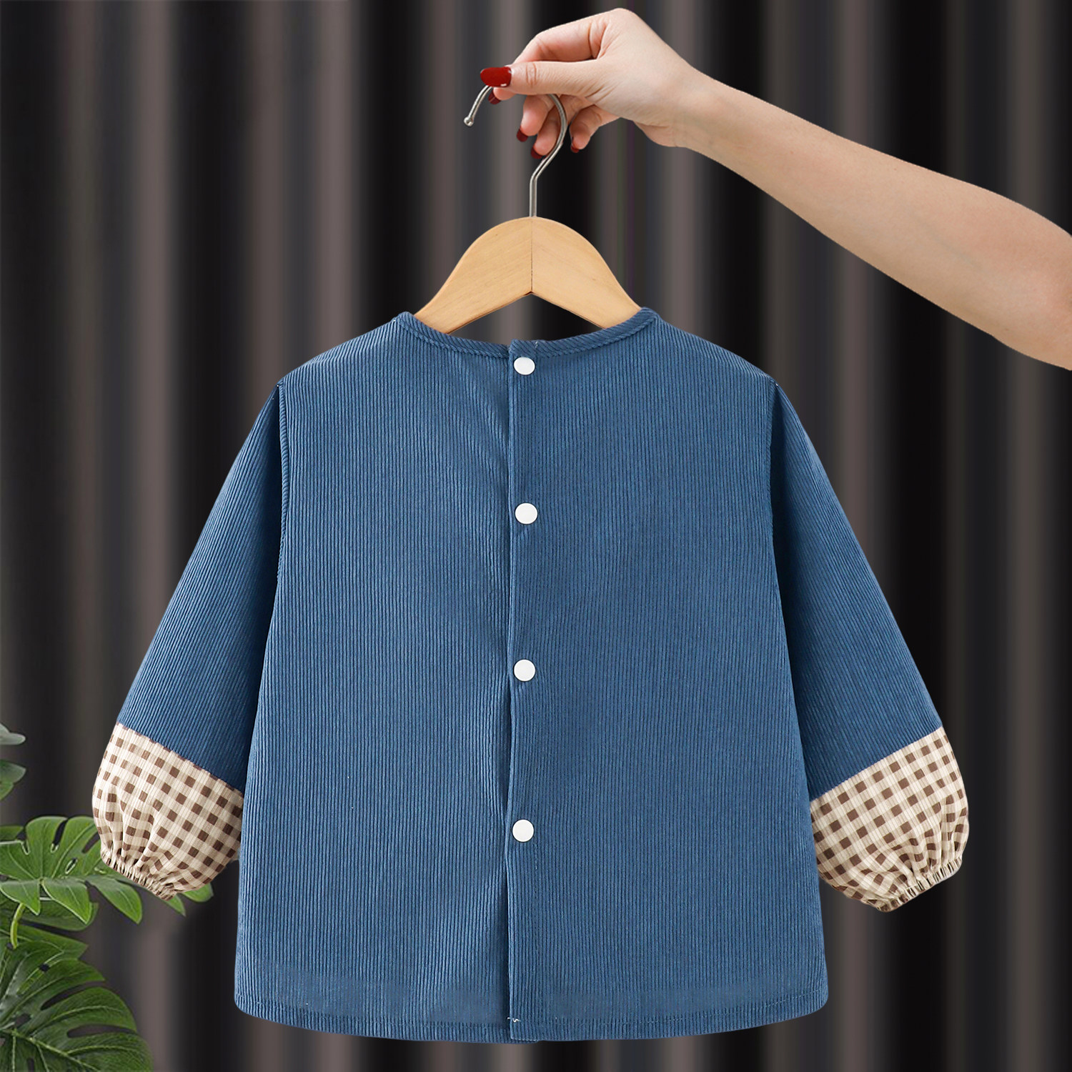 灯芯绒儿童罩衣幼儿园女宝宝吃饭围兜男孩防水防脏反穿衣饭兜围裙