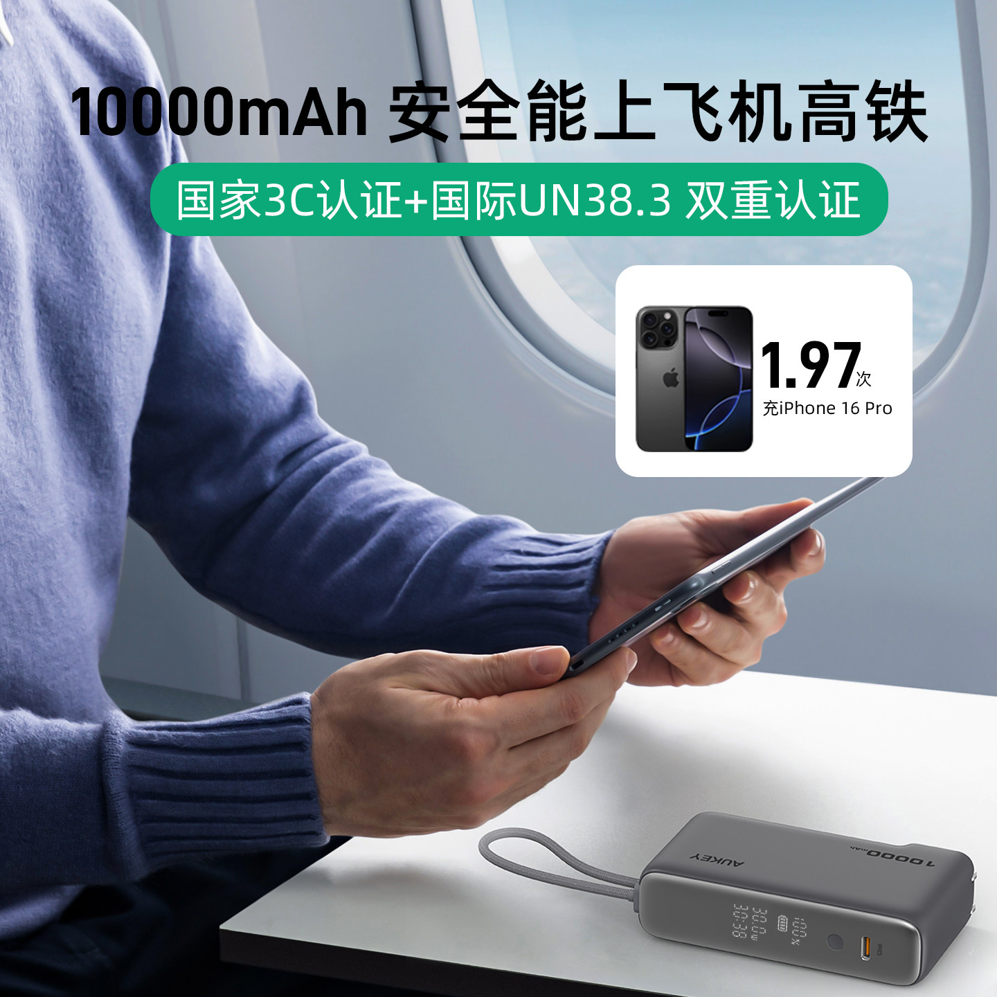 AUKEY10000毫安大容量充电宝三合一移动电源 国家3C认证可上飞机火车