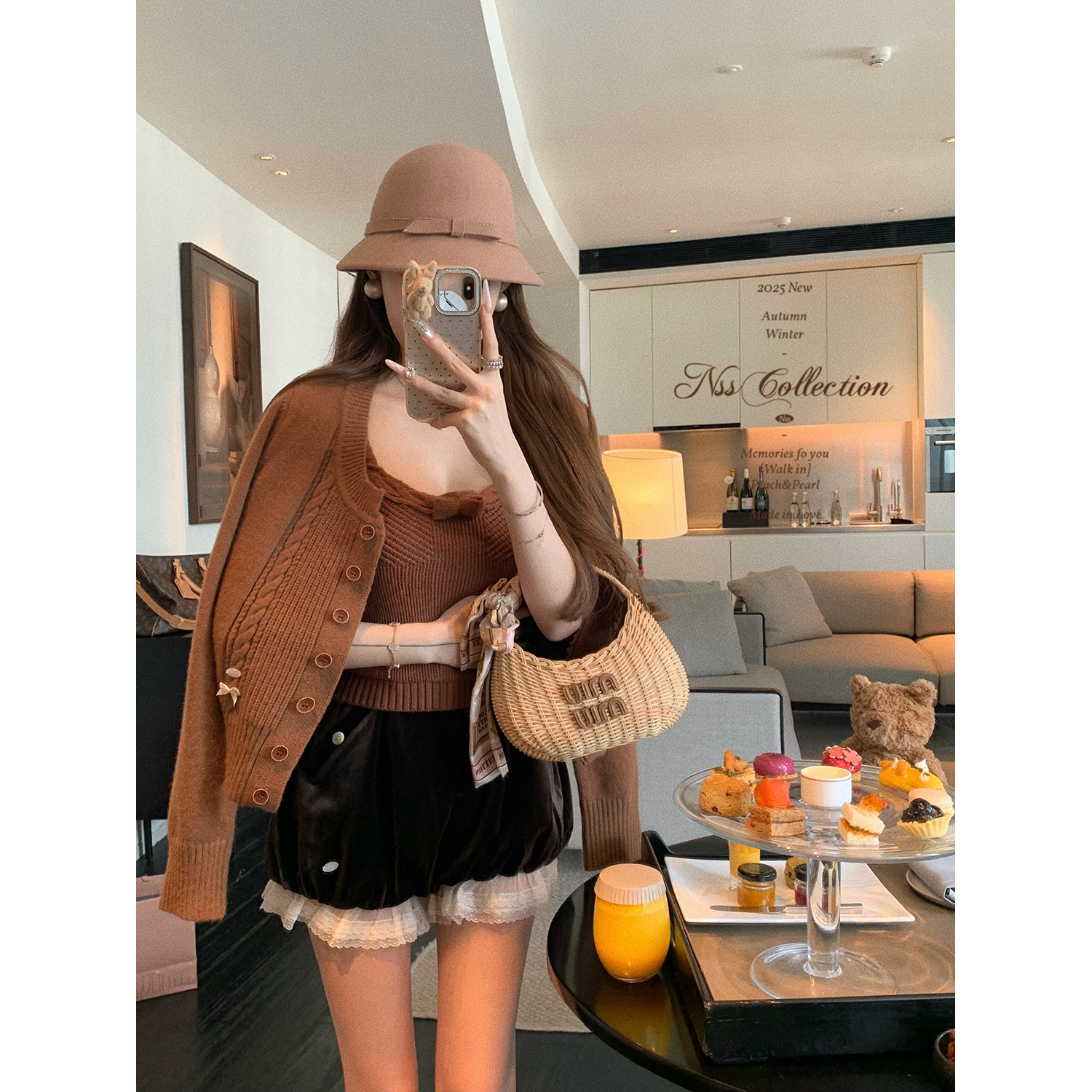 COLLECTION 针织开衫 甜妹心事Sweet 短裤 外套 黑色丝绒南瓜裤 NSS