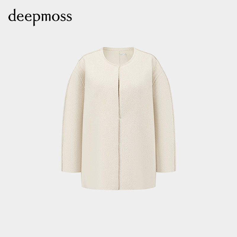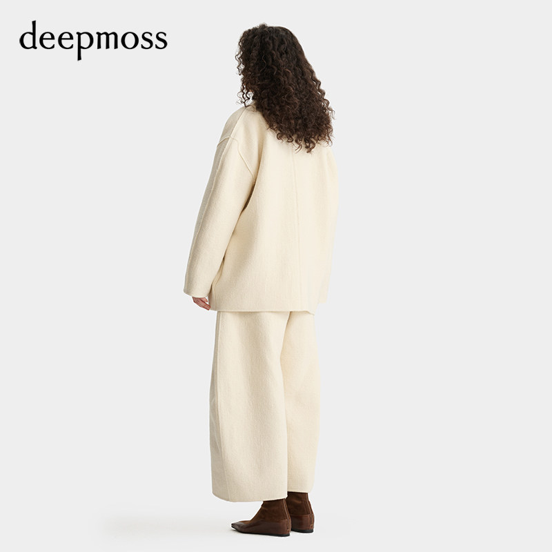大衣 设计感奶白无领茧型纯绵羊毛短款 deepmoss
