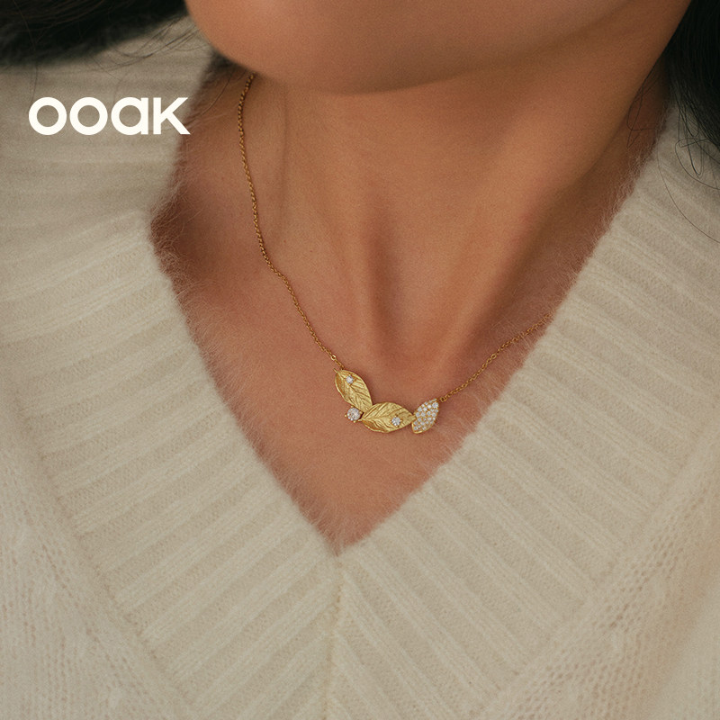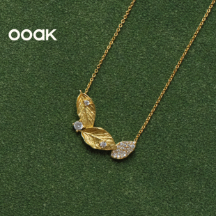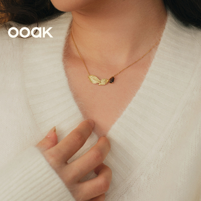 OOAK界格月桂叶加冕系列微笑项链红玉髓虎眼石月桂叶简约金色项链