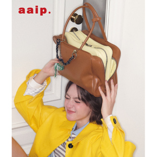 aaip拼接撞色包包法式 单肩包真皮通勤公文包简约大容量单肩托特包