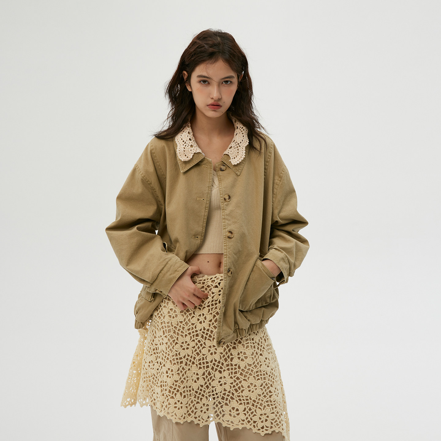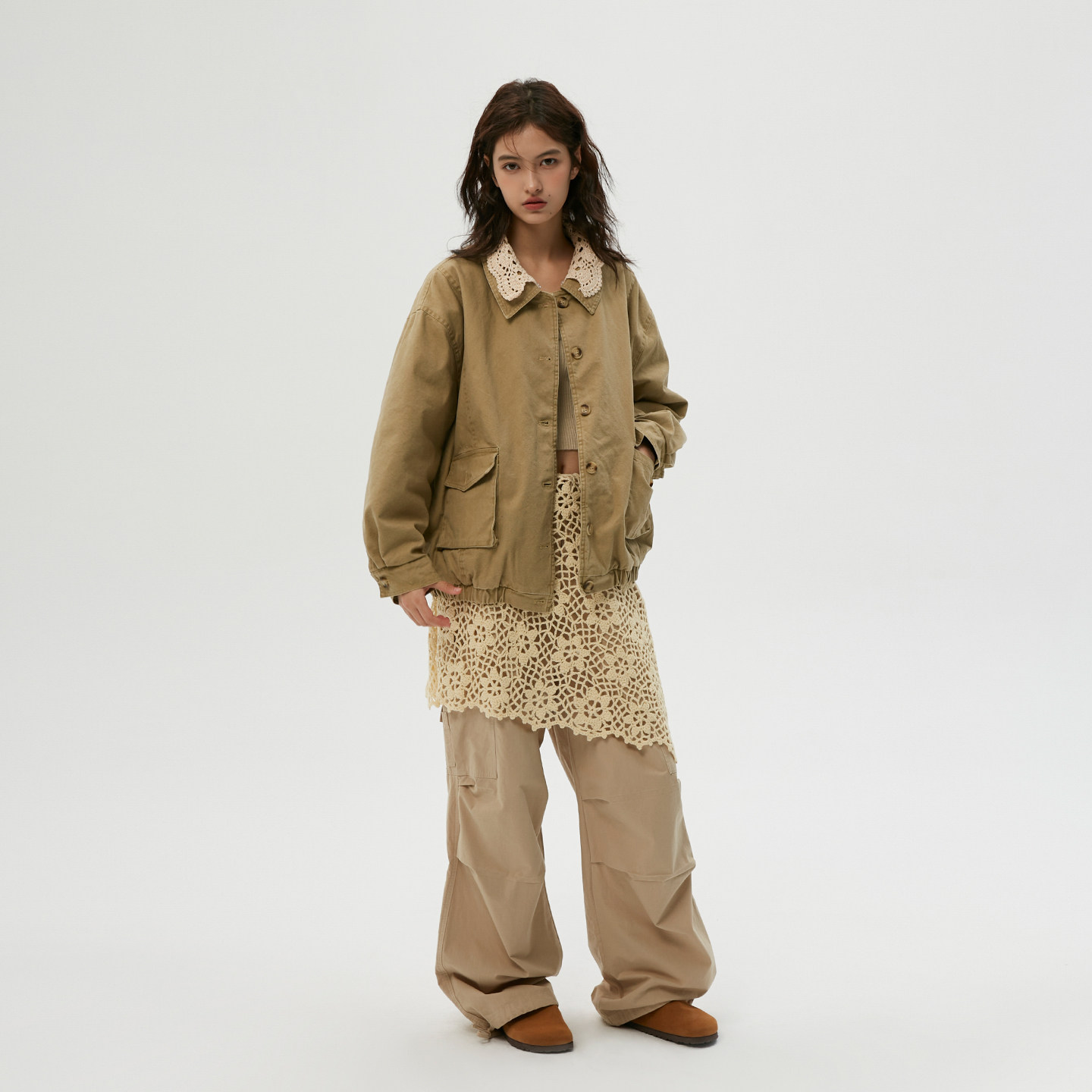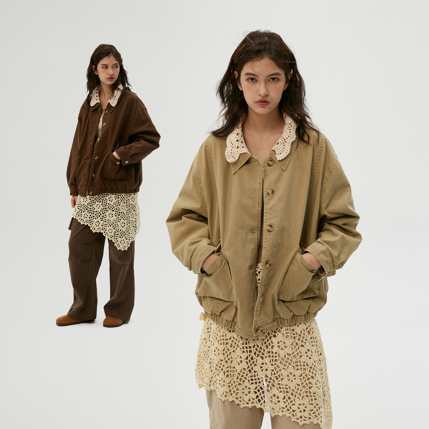 冬季 钩花可拆卸领 做旧雅丹风宽松棉服厚外套 岚室 Clamisgold
