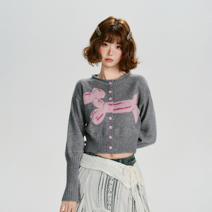 复古提花毛衣开衫 修身 外套女秋季 短款 针织上衣 新款 Girlyhalo美式