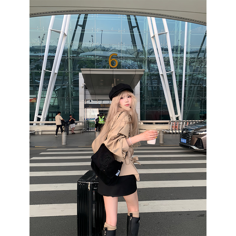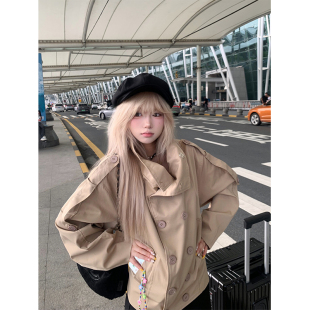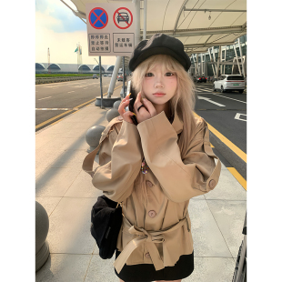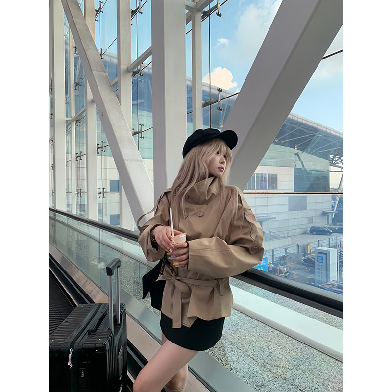 男女宽松休闲气质系带收腰设计感外套 立领双排扣风衣秋季 JMJ 美式