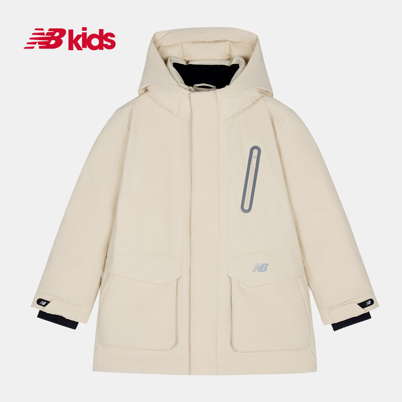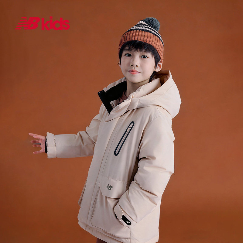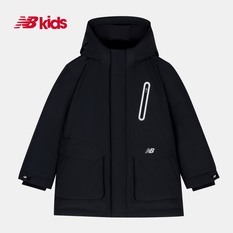 90%绒子含量 中长款 nb官方童装 新品 保暖鸭绒连帽羽绒服 冬季