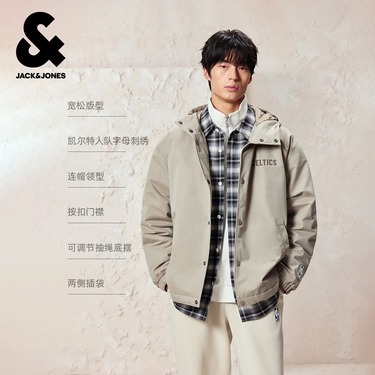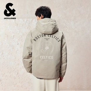 外套 NBA联名连帽字母图案款 杰克琼斯男装 秋冬羽绒服2025年新款