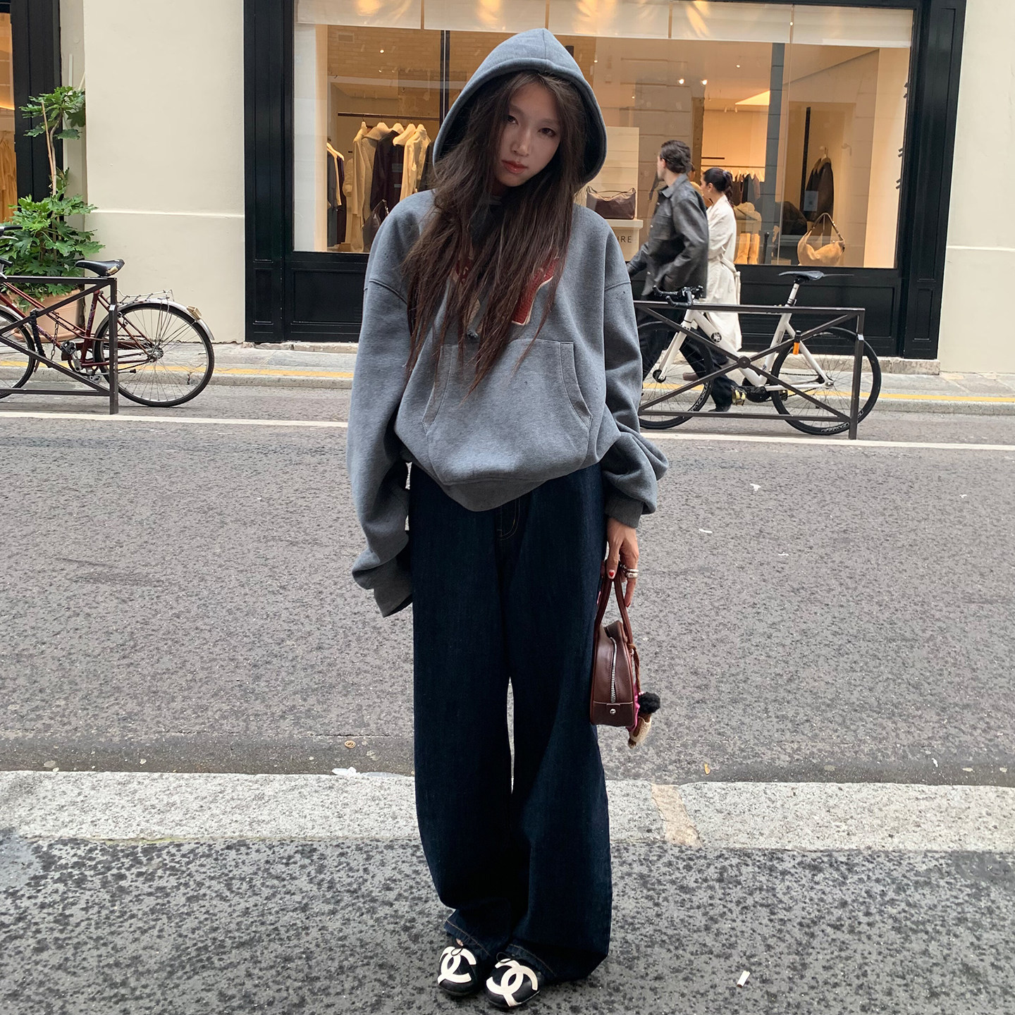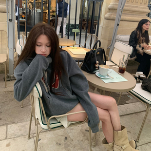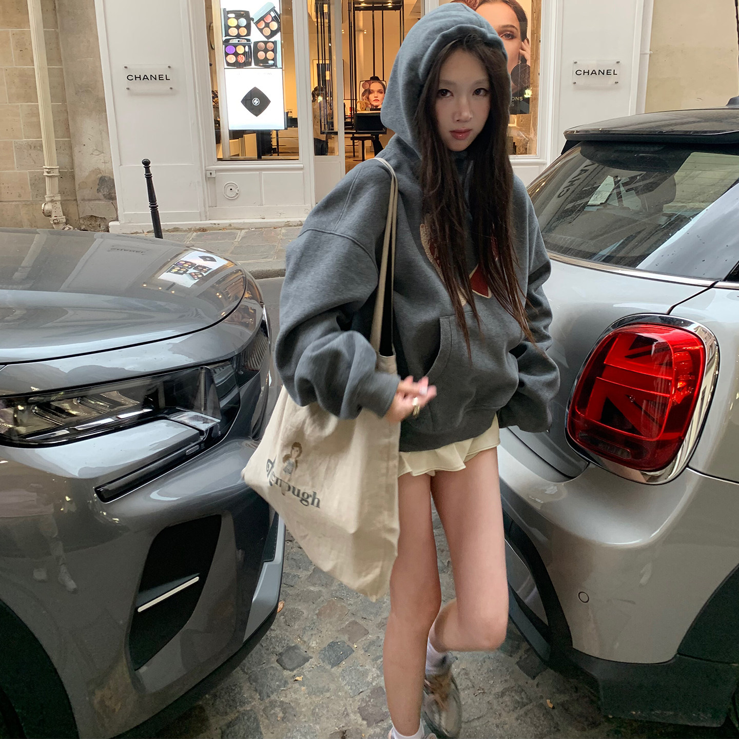 Avocadong 上衣 原创重工深灰色手掌爱心刺绣连帽卫衣外套女2025款