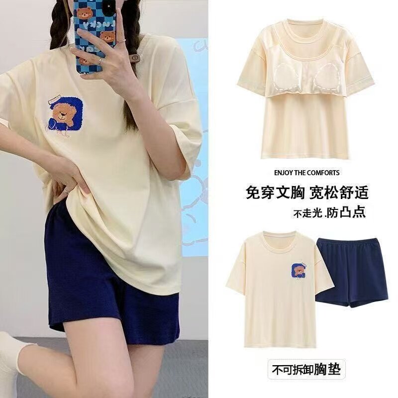 自带胸垫一体可外穿吸汗大码 短裤 家居服 女士睡衣女夏短袖 2025夏季