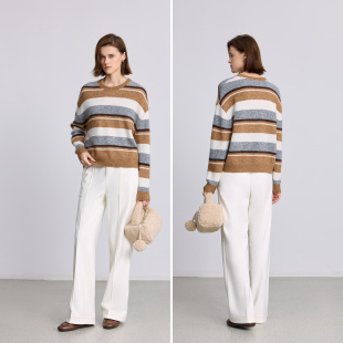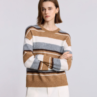 LILY2025冬新款 毛衣女 羊毛羊驼毛混纺复古撞色条纹加厚加绒针织衫