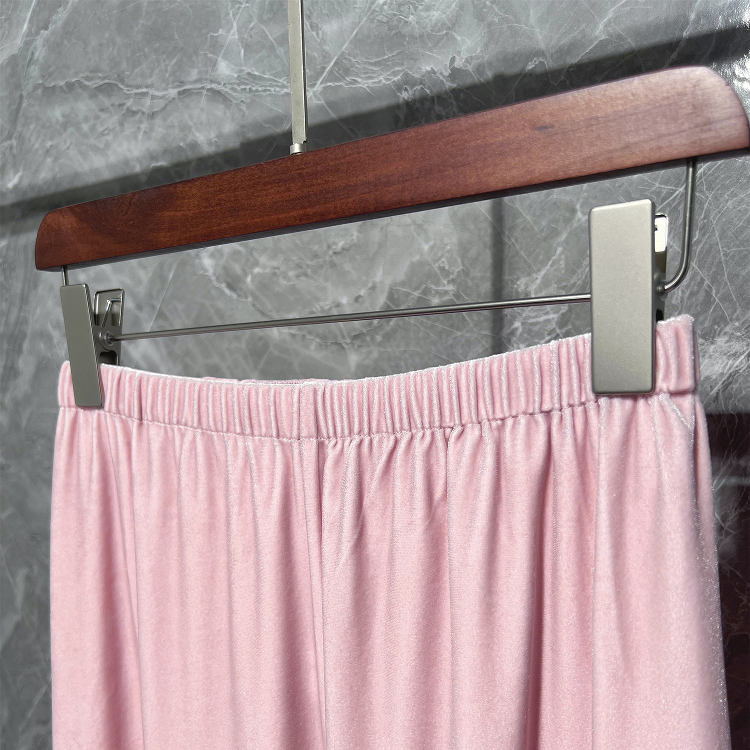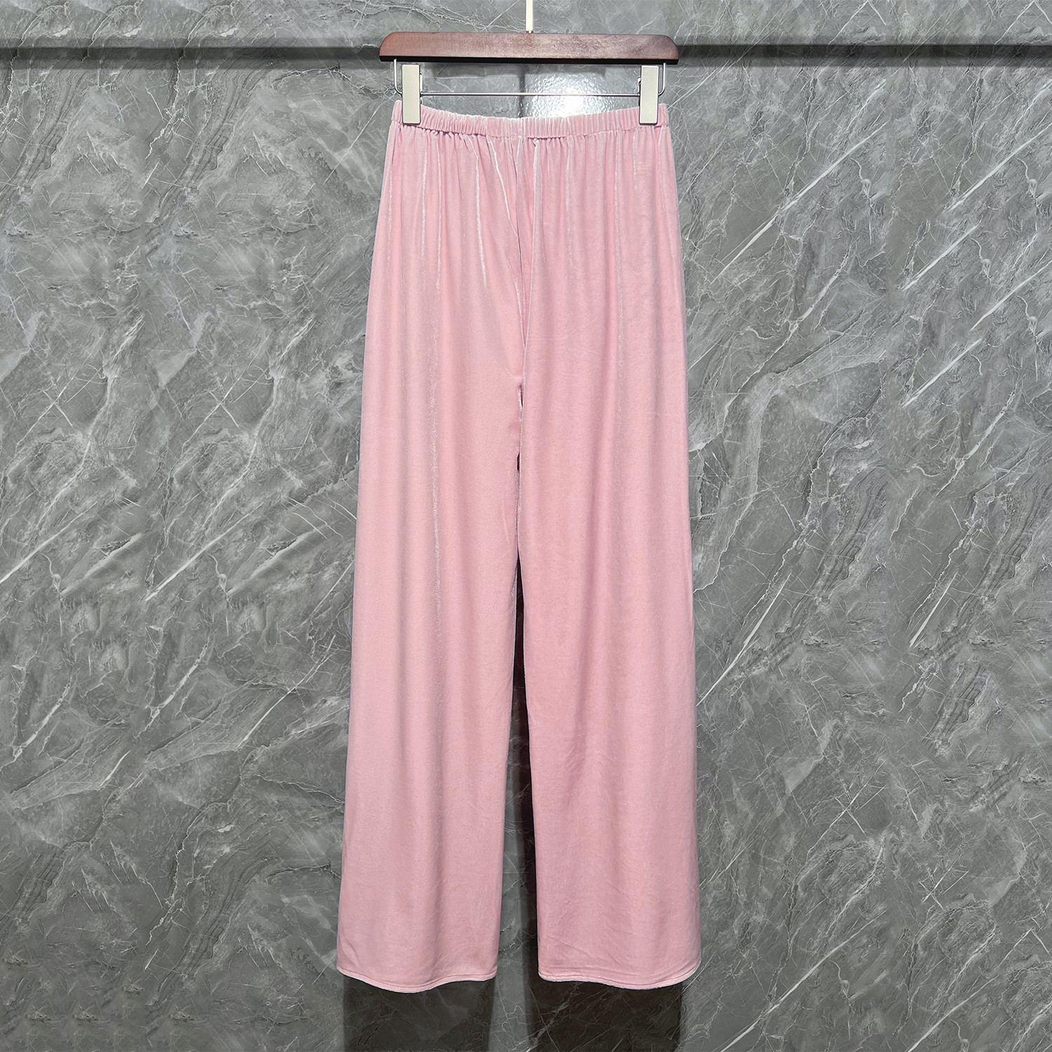 利落剪裁休闲裤 细腻丝绒一片式 女 纸片人松紧腰阔脚裤 韩国绒空气裤