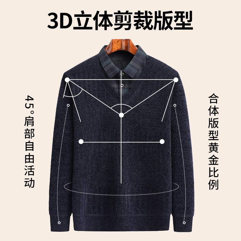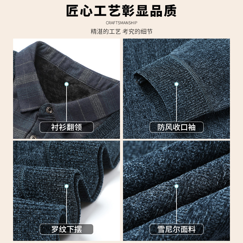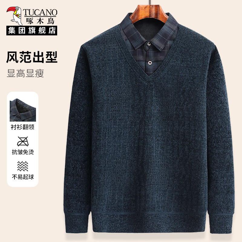 POLO衫 秋冬爸爸装 假两件防寒内搭 2025新款 啄木鸟加绒加厚毛衣男款