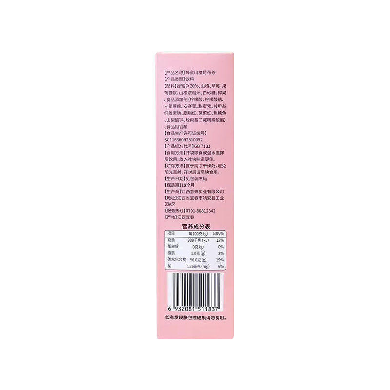 含蜂蜜 10条 果茶 蜂蜜山楂莓莓茶45g 巢济堂