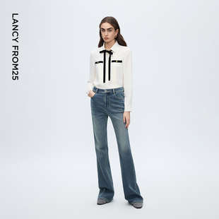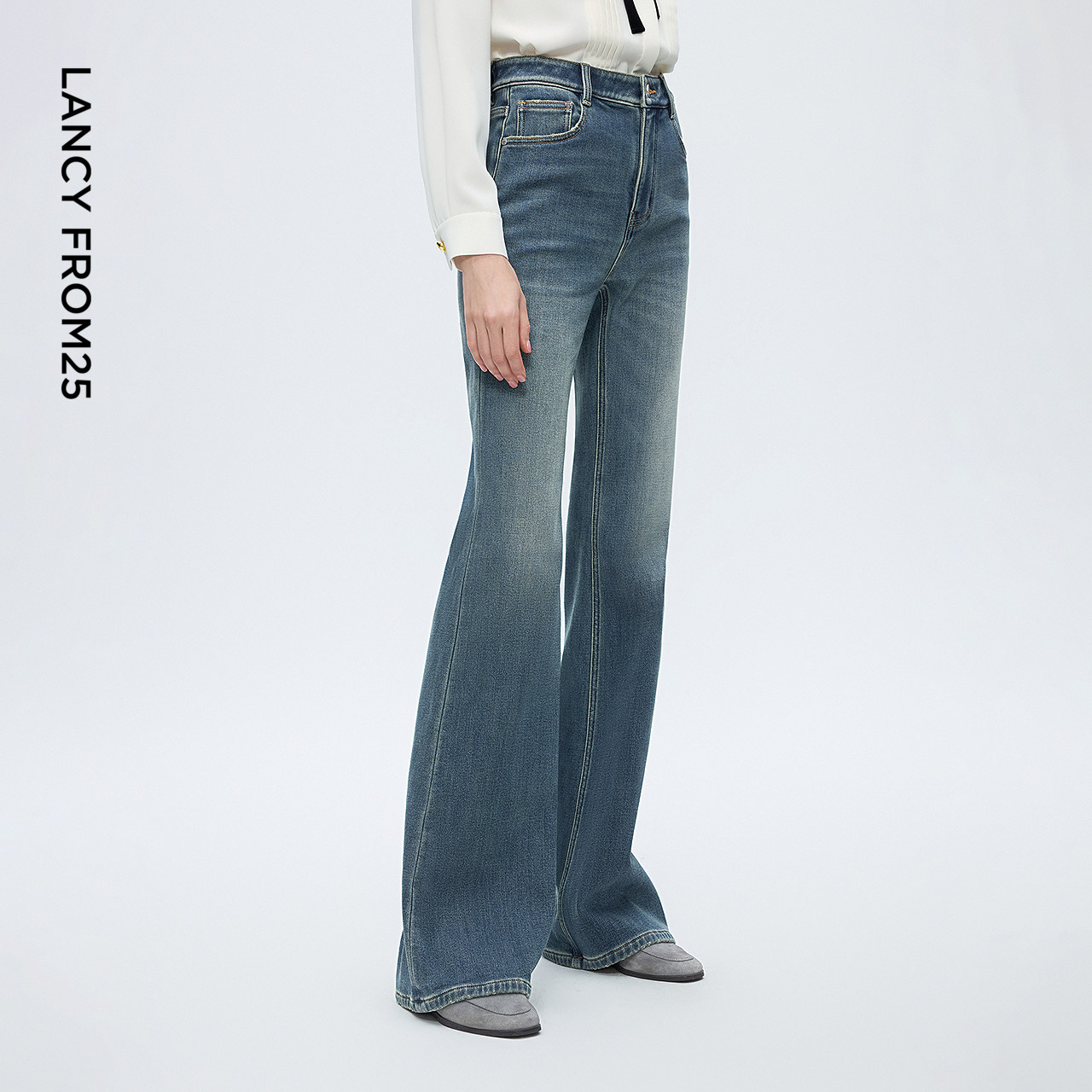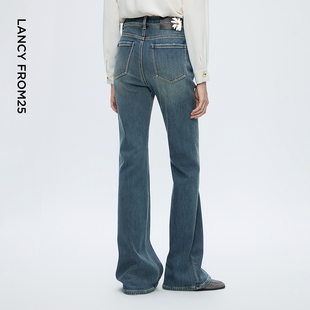 微喇牛仔裤 新款 加厚裤 显瘦2025年冬季 女 子简约修身 朗姿复古加绒裤