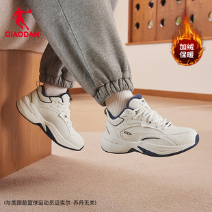 高帮皮面防水老爹鞋 乔丹源生加绒保暖休闲鞋 新款 2025冬季 子 女棉鞋