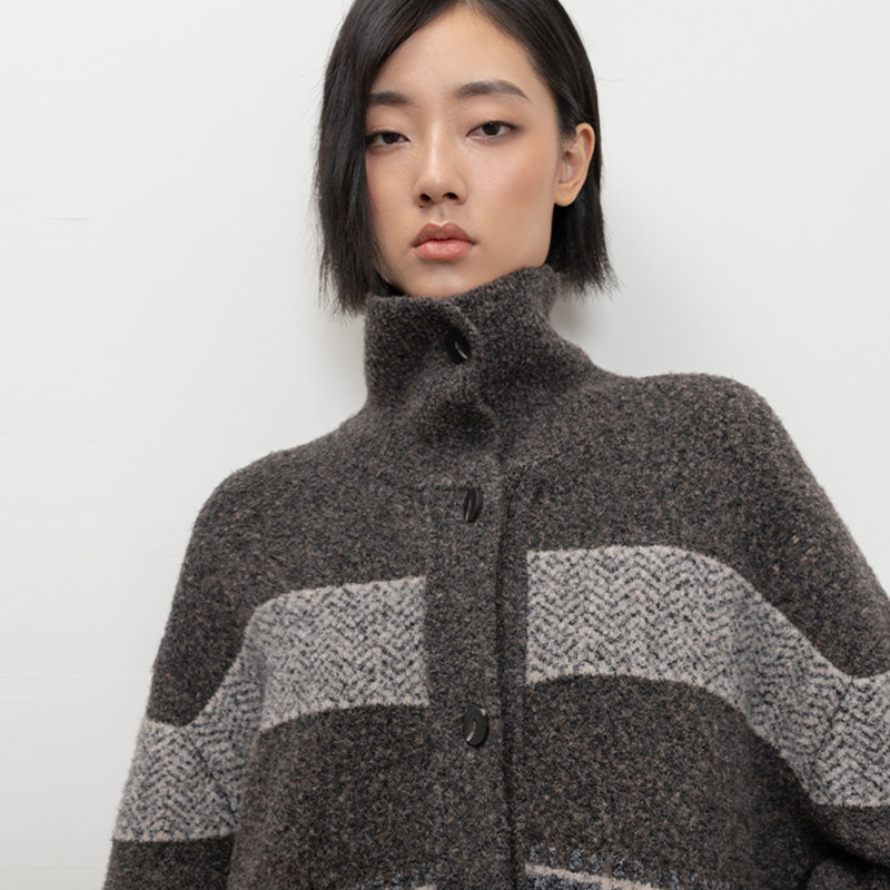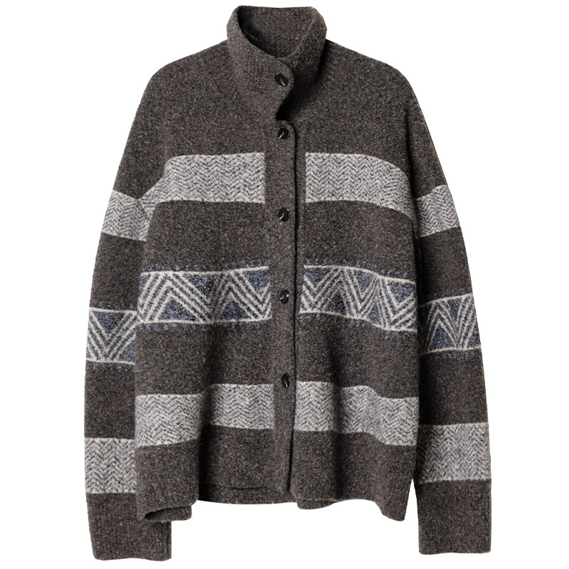 宽松长袖 秋季 外套B490 女2025新款 322WORKHOUSE费尔岛高领毛衣开衫