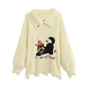 针织衫 polo领套头毛衣女春秋宽松慵懒长袖 上衣 慵懒基因 pusumede