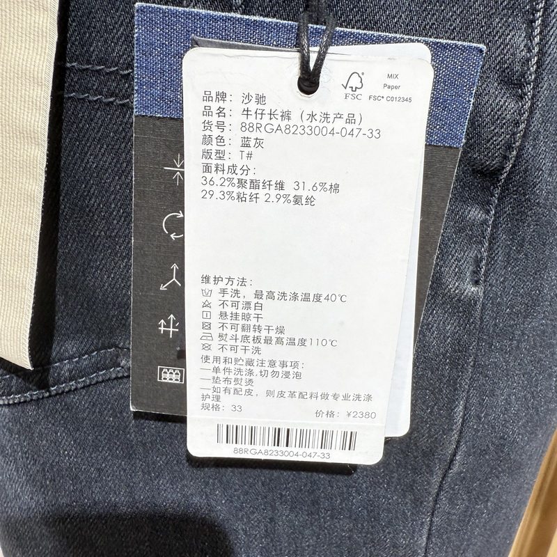 休闲直筒牛仔长裤 男装 88RGA8233004柜2380 自然修身 Satchi沙驰春款
