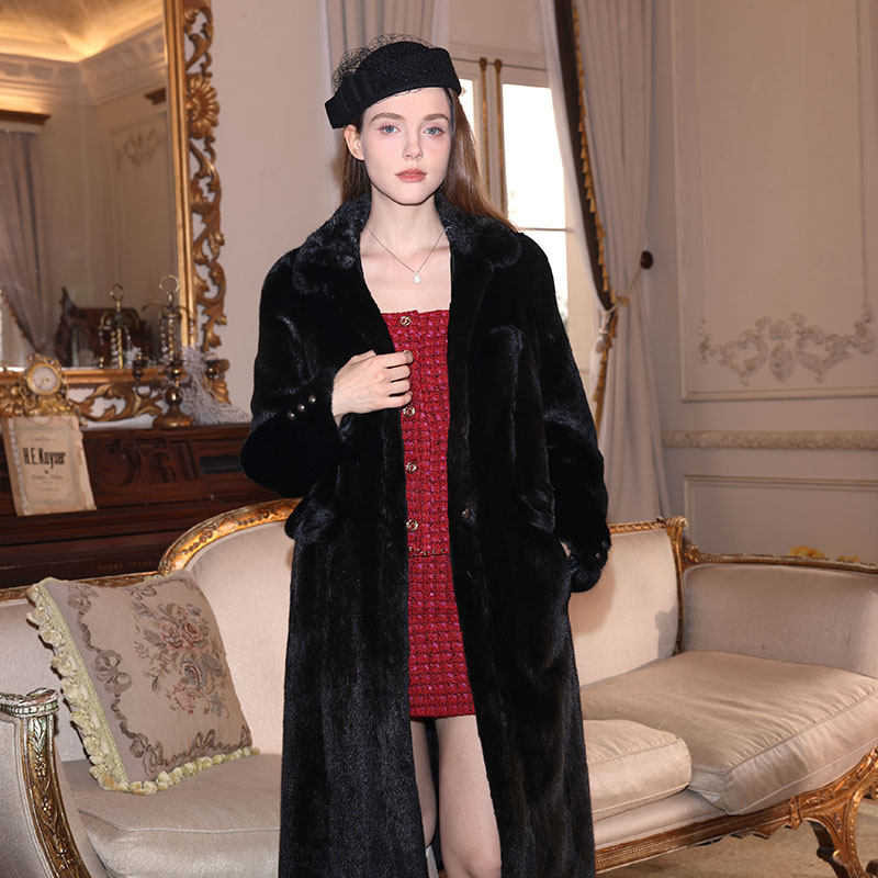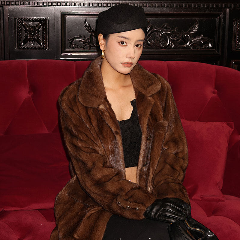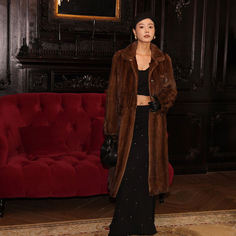 貂皮大衣女秋冬 进口紫标级天鹅绒水貂外套翻领长款 茉萱 玫瑰骑士