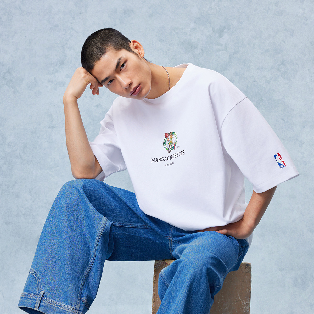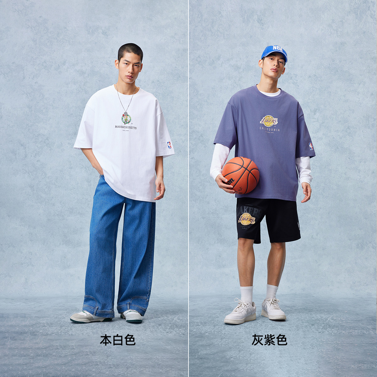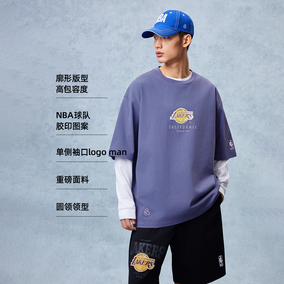湖人队重磅纯棉短袖 春夏新款 杰克琼斯男装 T恤宽松打底 NBA联名