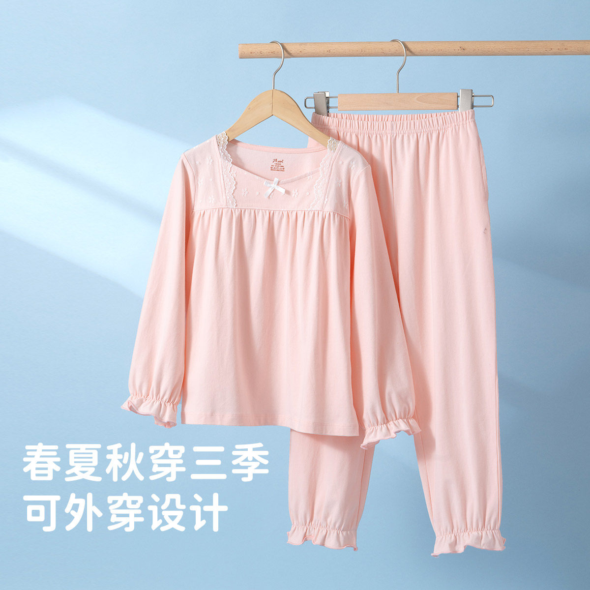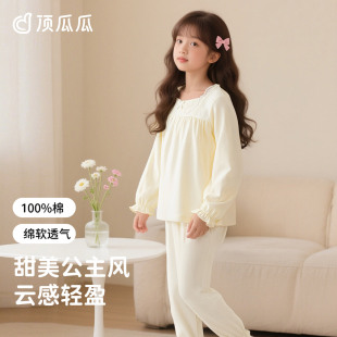 冬季 顶瓜瓜甜美风女童睡衣100%纯棉长袖 公主风家居服套装