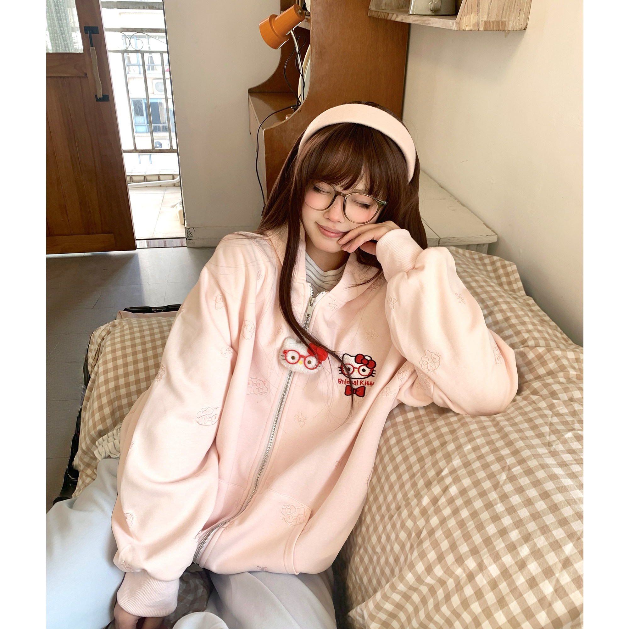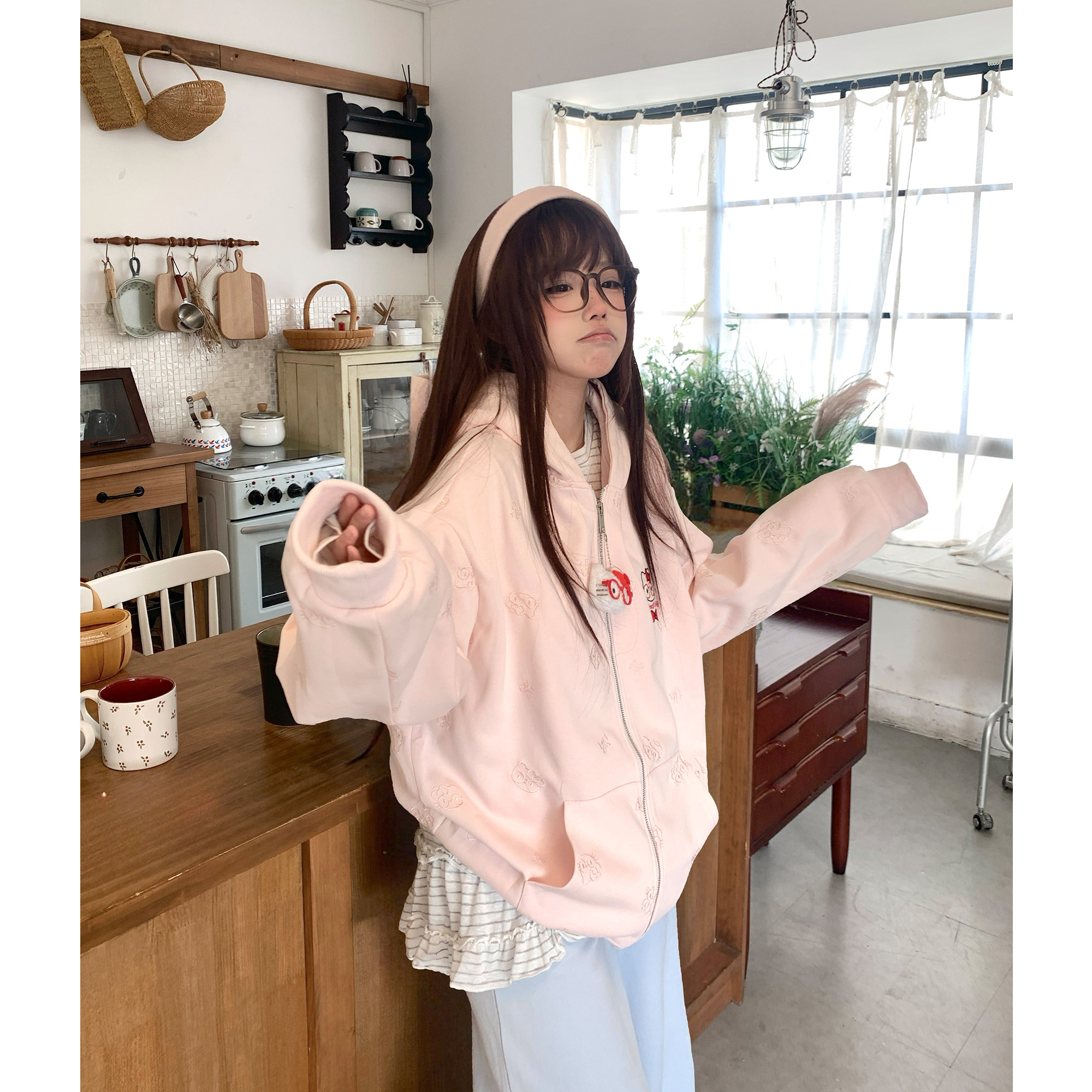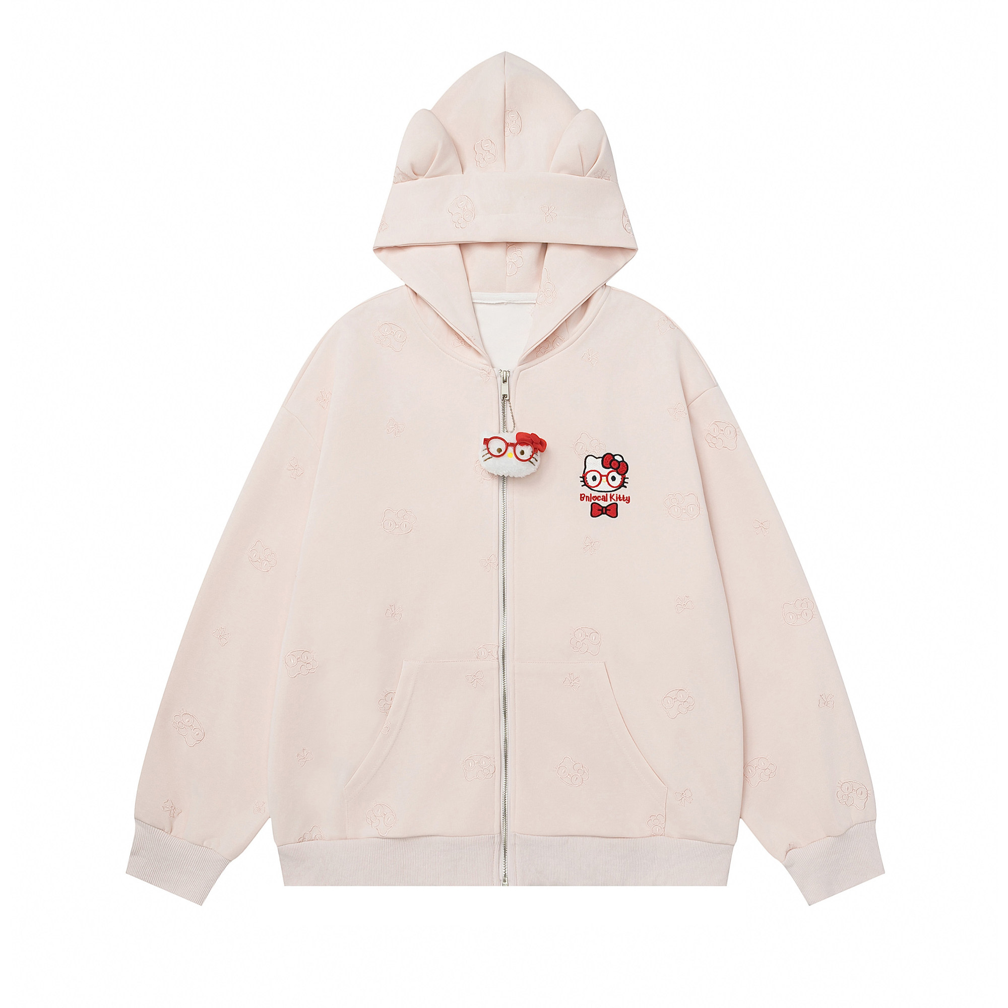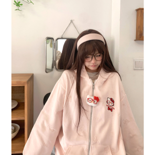 TUDOU土豆猫粉色可爱kitty猫连帽卫衣外套女宽松慵懒风设计感小众