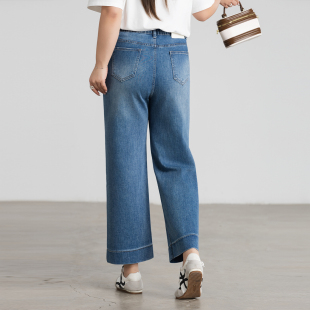 胖mm高腰梨形身材直筒裤 大码 200斤春夏2026年新款 九分牛仔裤 女装