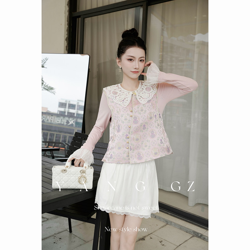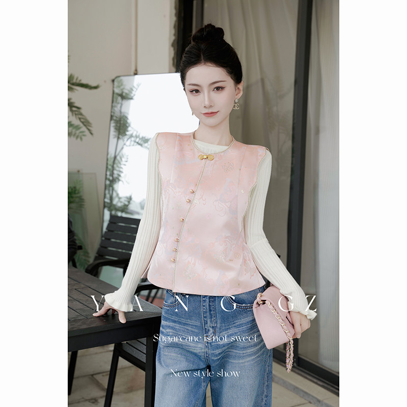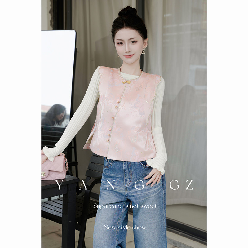 国风新款 YANG 新中式 花语梦蝶 蝶恋花纹圆领马甲外穿上衣女