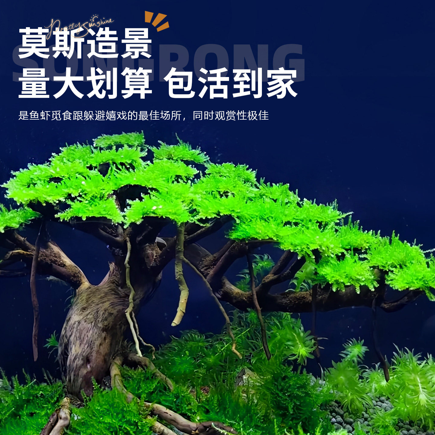 莫斯水草真松茸莫斯盒片鱼缸造景专用沉木慕斯树装 饰前景阴性植物