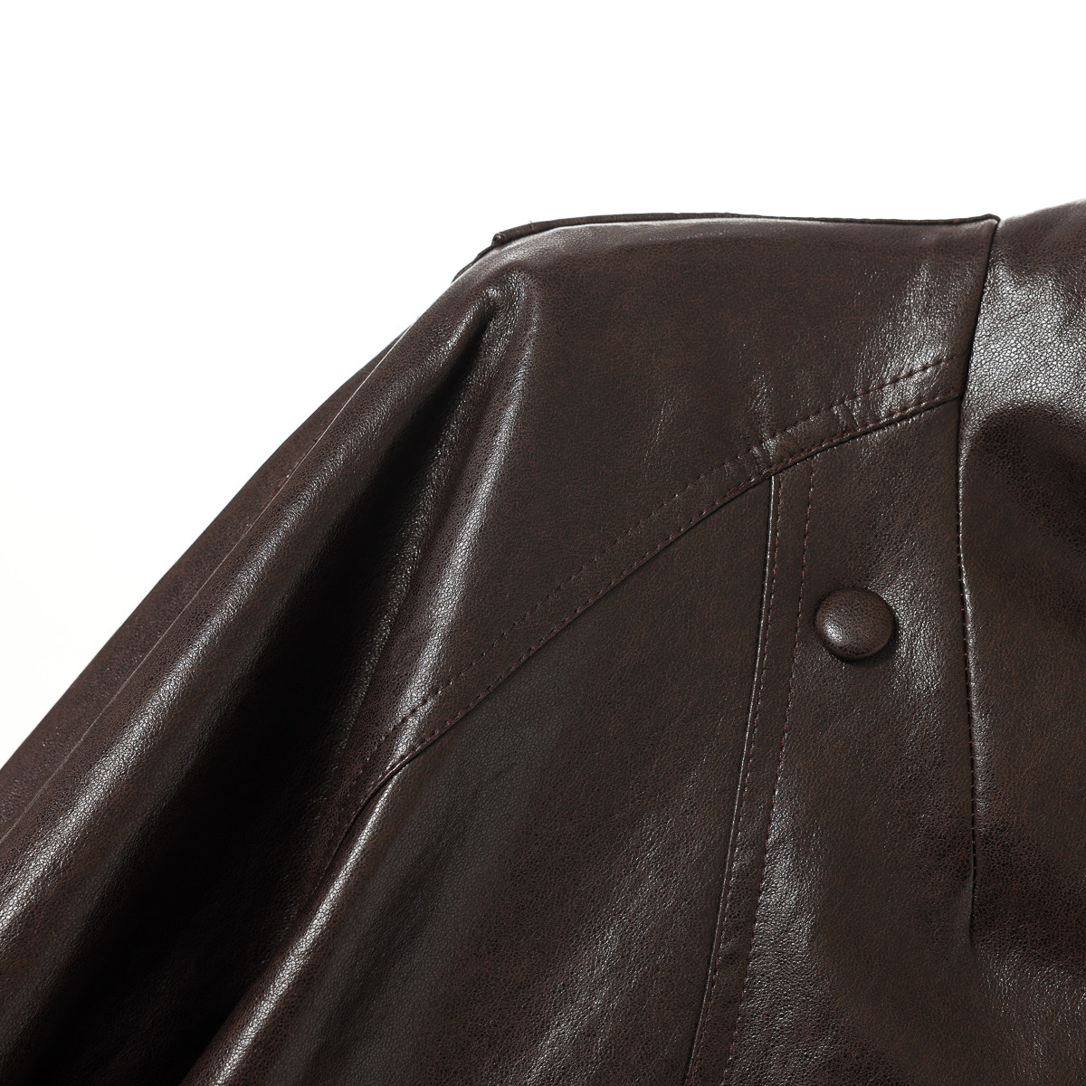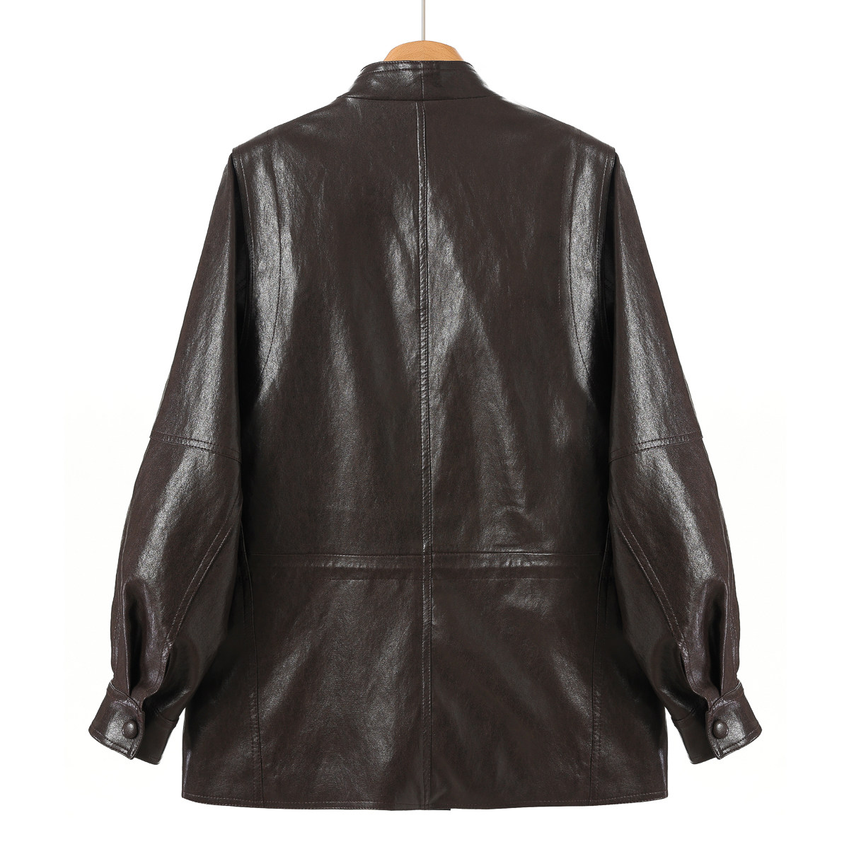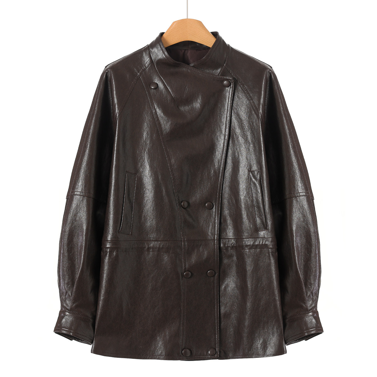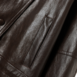 重奢抽绳收腰干练气质皮衣外套997 拉春装 羊皮革 韦