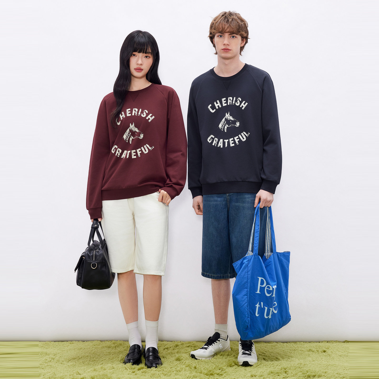 26春新品 复古撞色潮流图案宽松圆领卫衣男 多色美式 gxgjeans男装