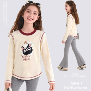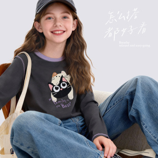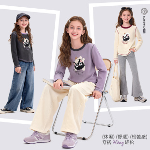 大童休闲卡通上衣青少年童装 女童T恤春装 长袖 儿童打底衫 2026新款