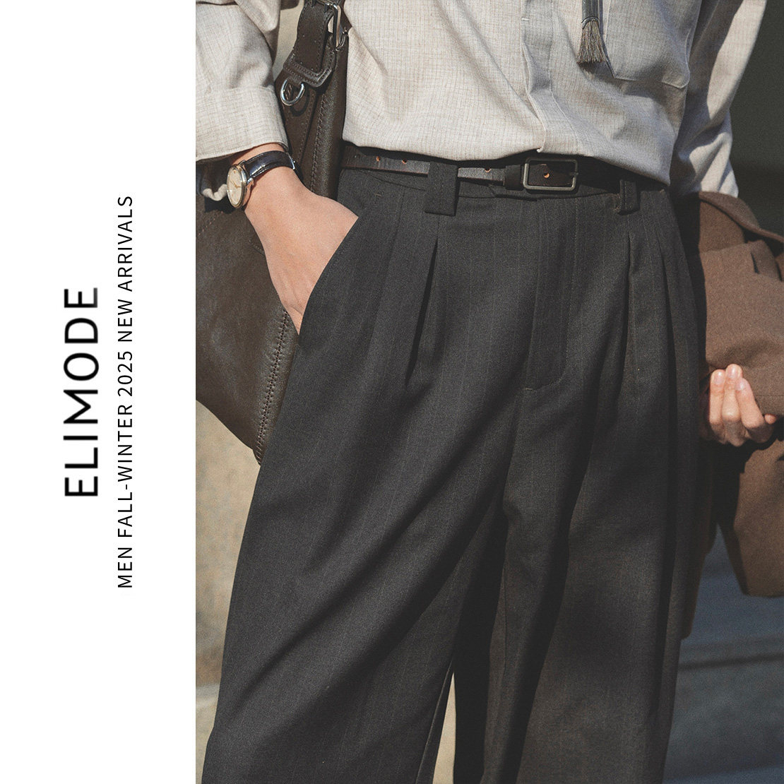 直筒西裤 春夏松紧腰单褶复古通勤免烫垂感休闲裤 耶加雪菲 ELI