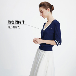 海军风上衣假两件撞色女针织衫 Navigare意大利小帆船2026春季 新款