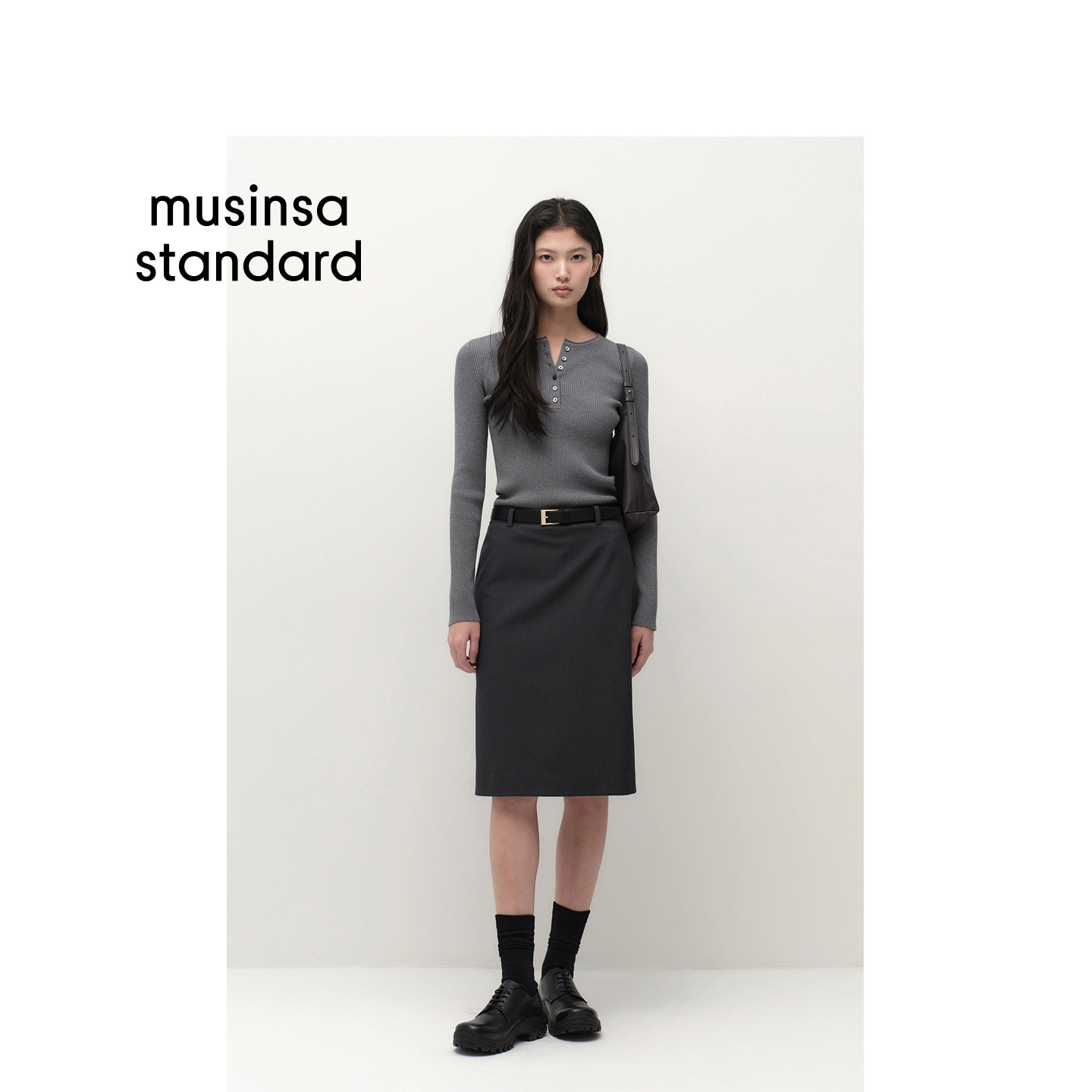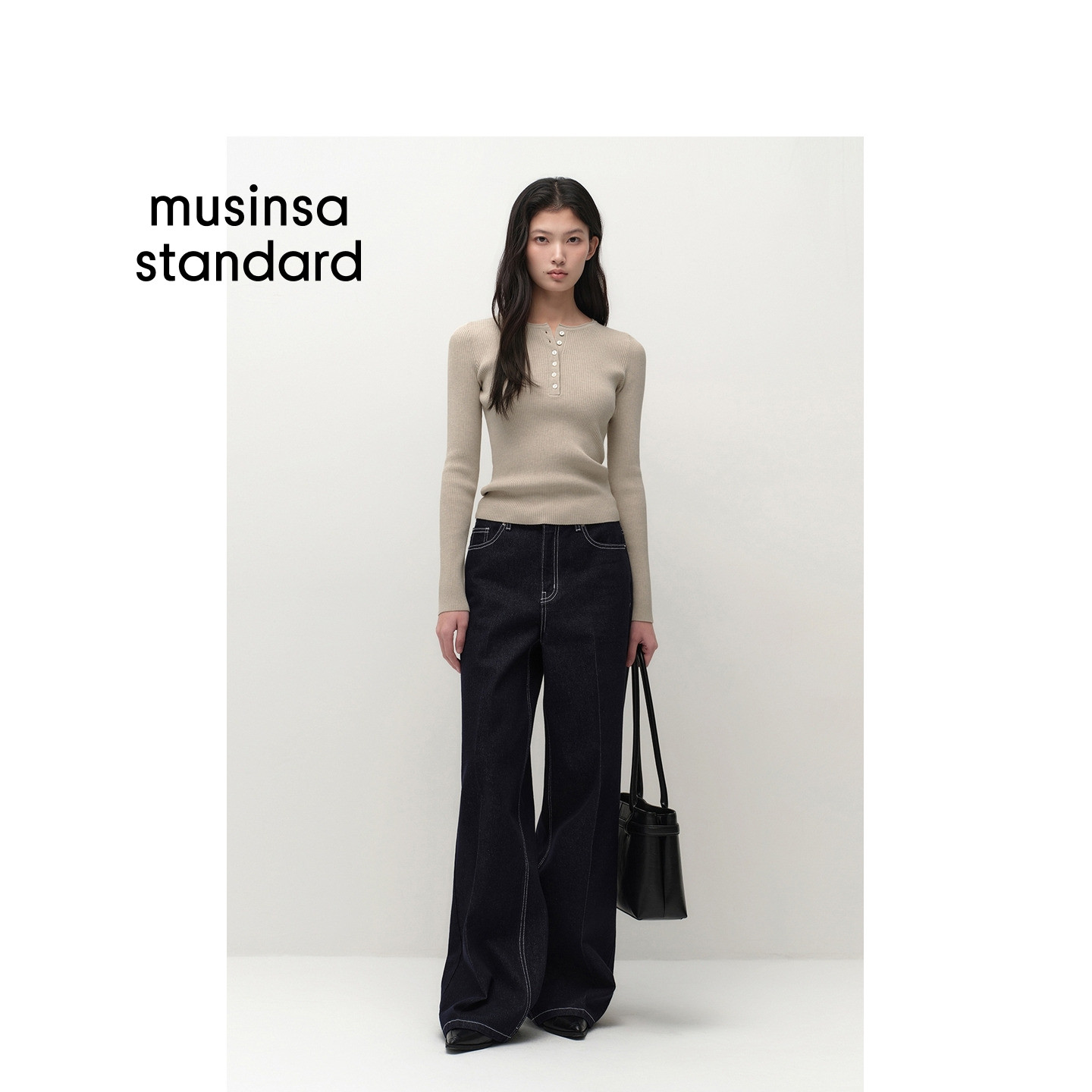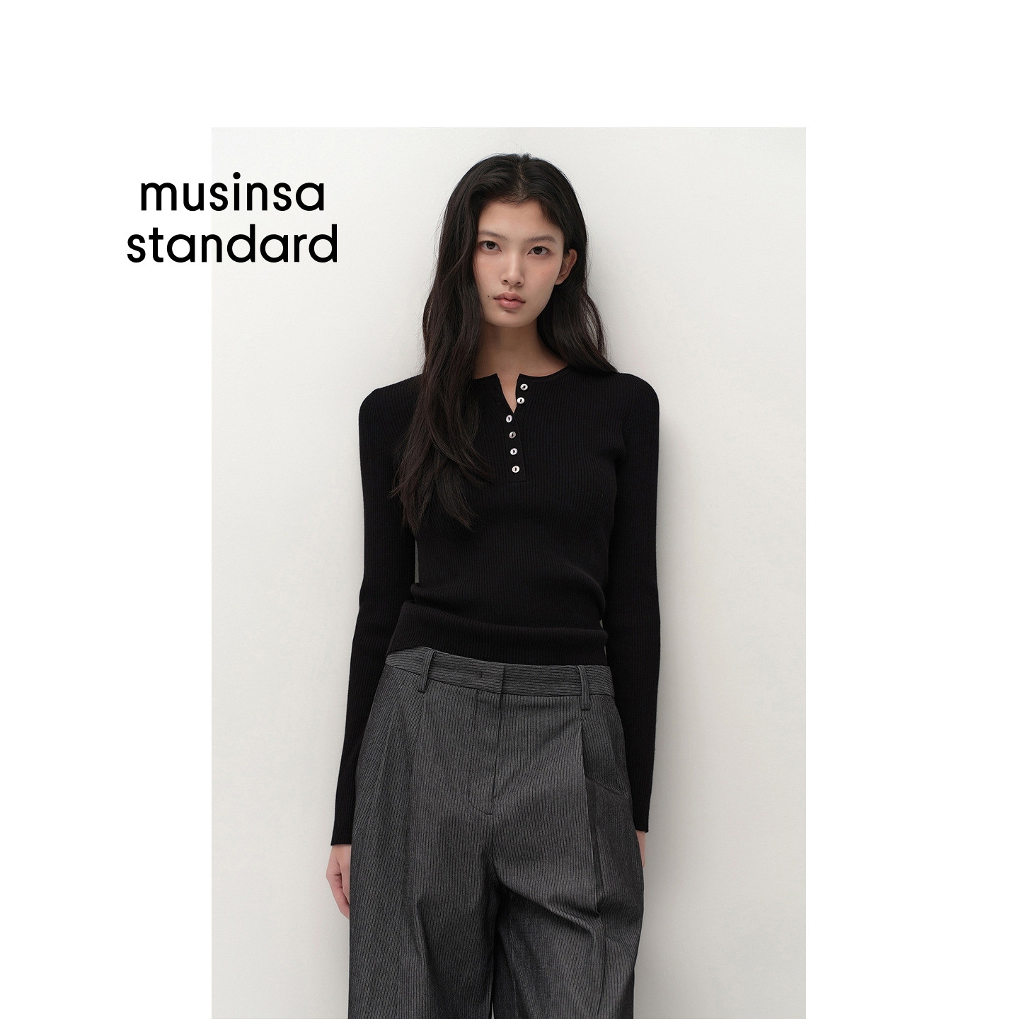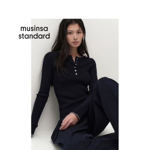 新品 musinsa 女士日常修身 针织衫 standard 亨利领长袖 韩国26春季