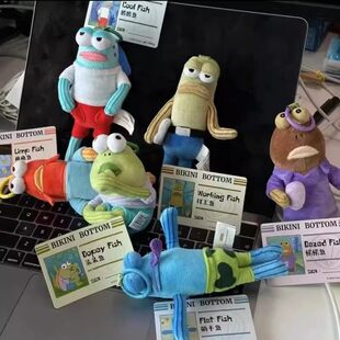 呆萌毛绒挂件海绵宝宝比奇堡居民创意卡通钥匙扣丑萌包挂装 饰玩偶