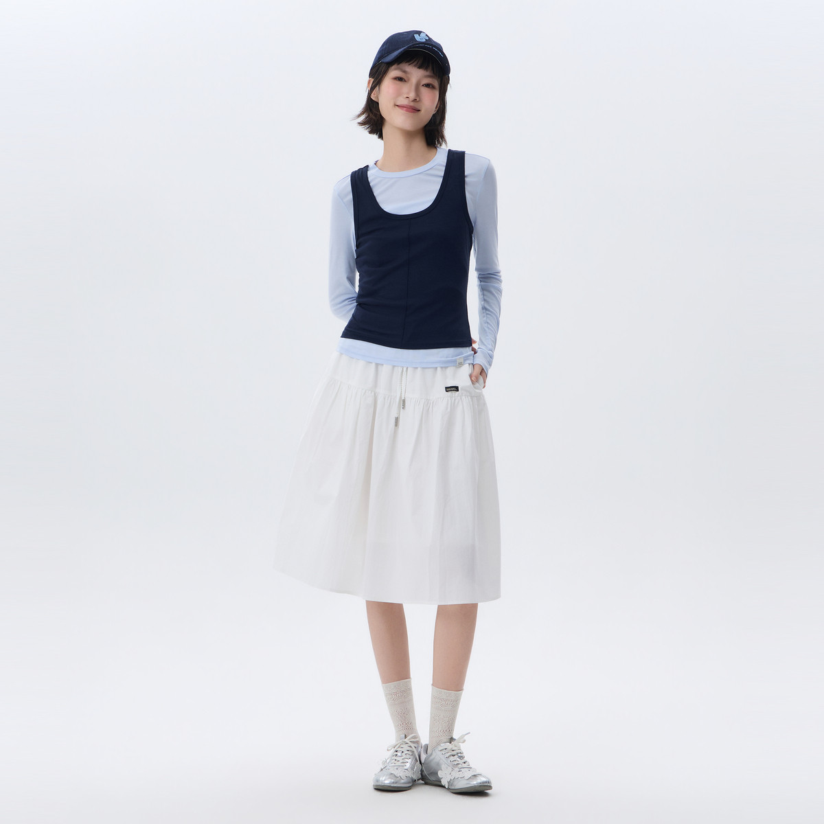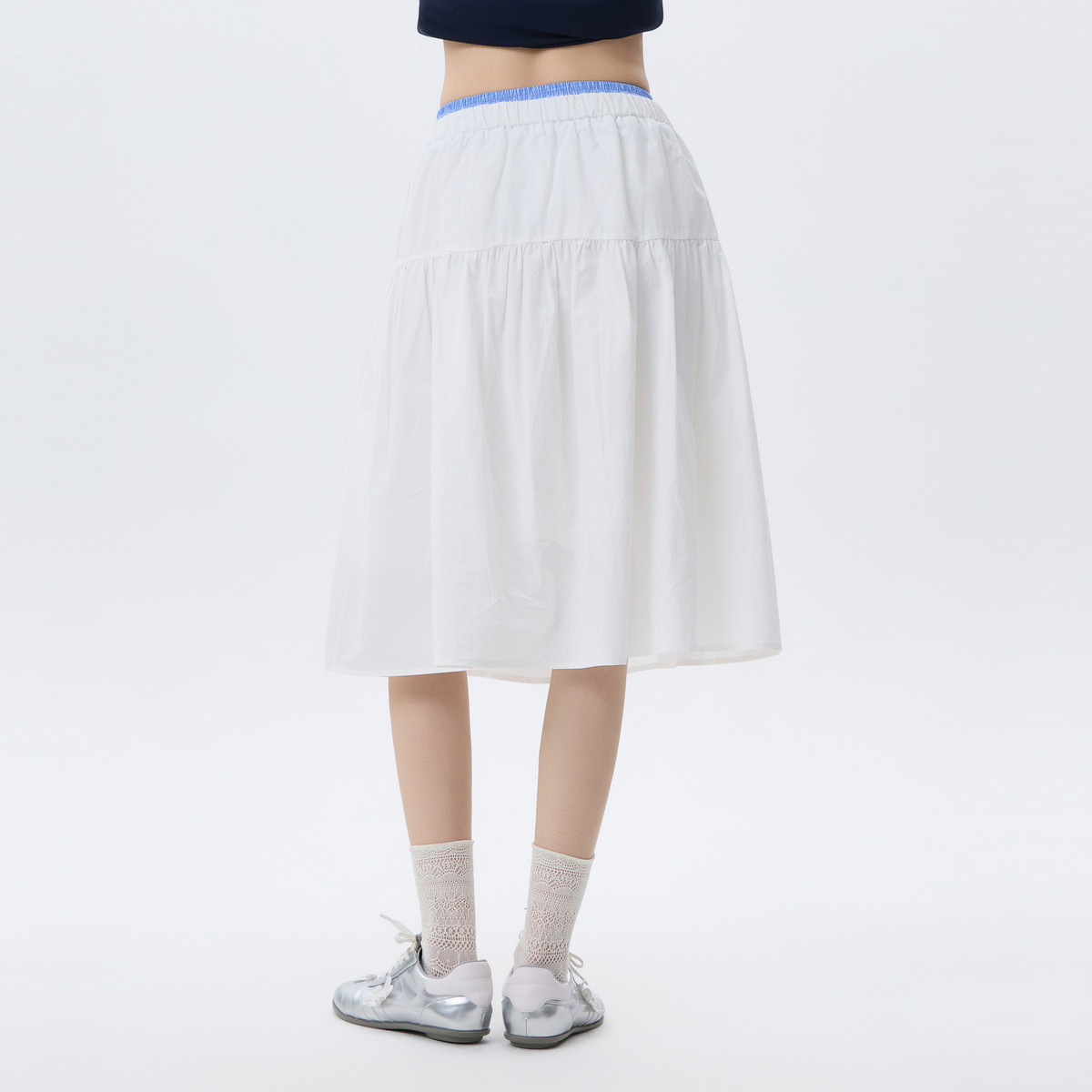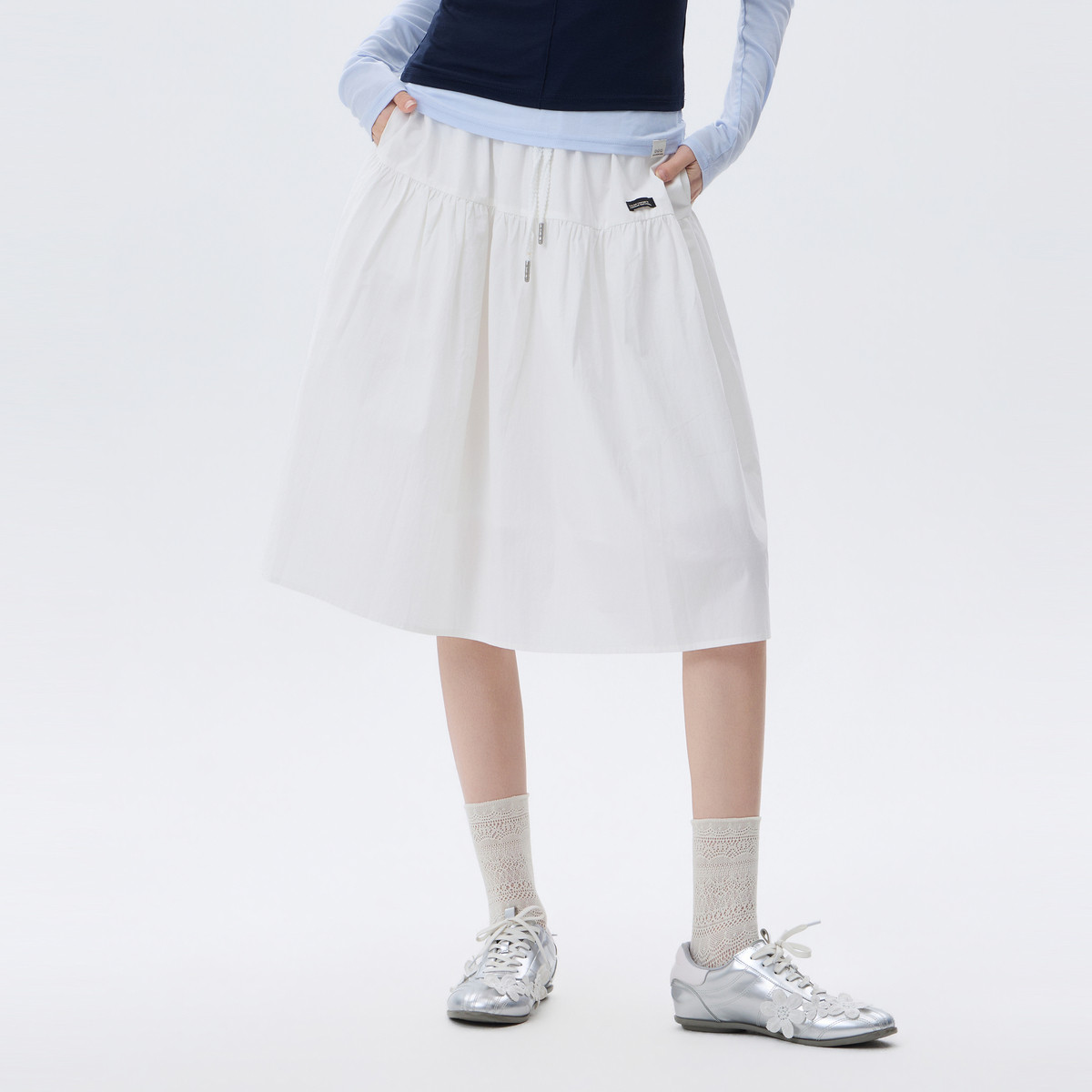 高腰A字小个子长裙子 新款 北欧时刻 淑女撞色白色半身裙女26年夏季