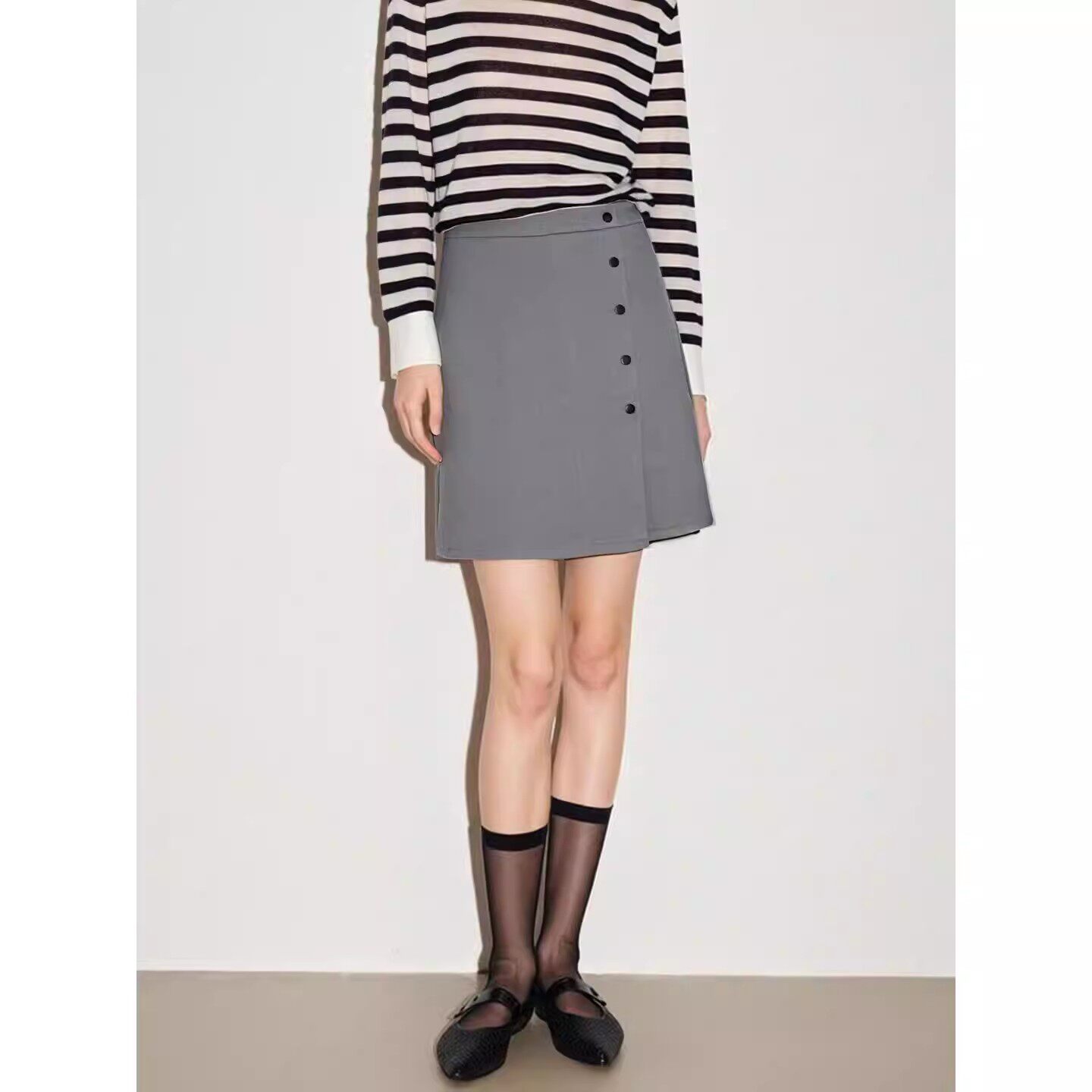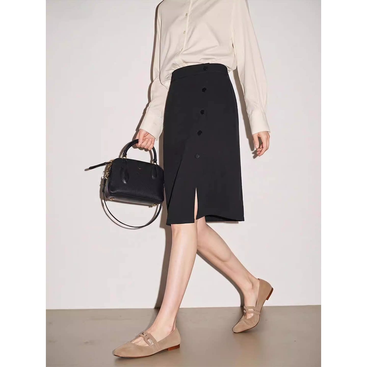 新款 Basic 半身裙女2026春季 百家好设计感开叉西装 A字中裙 House