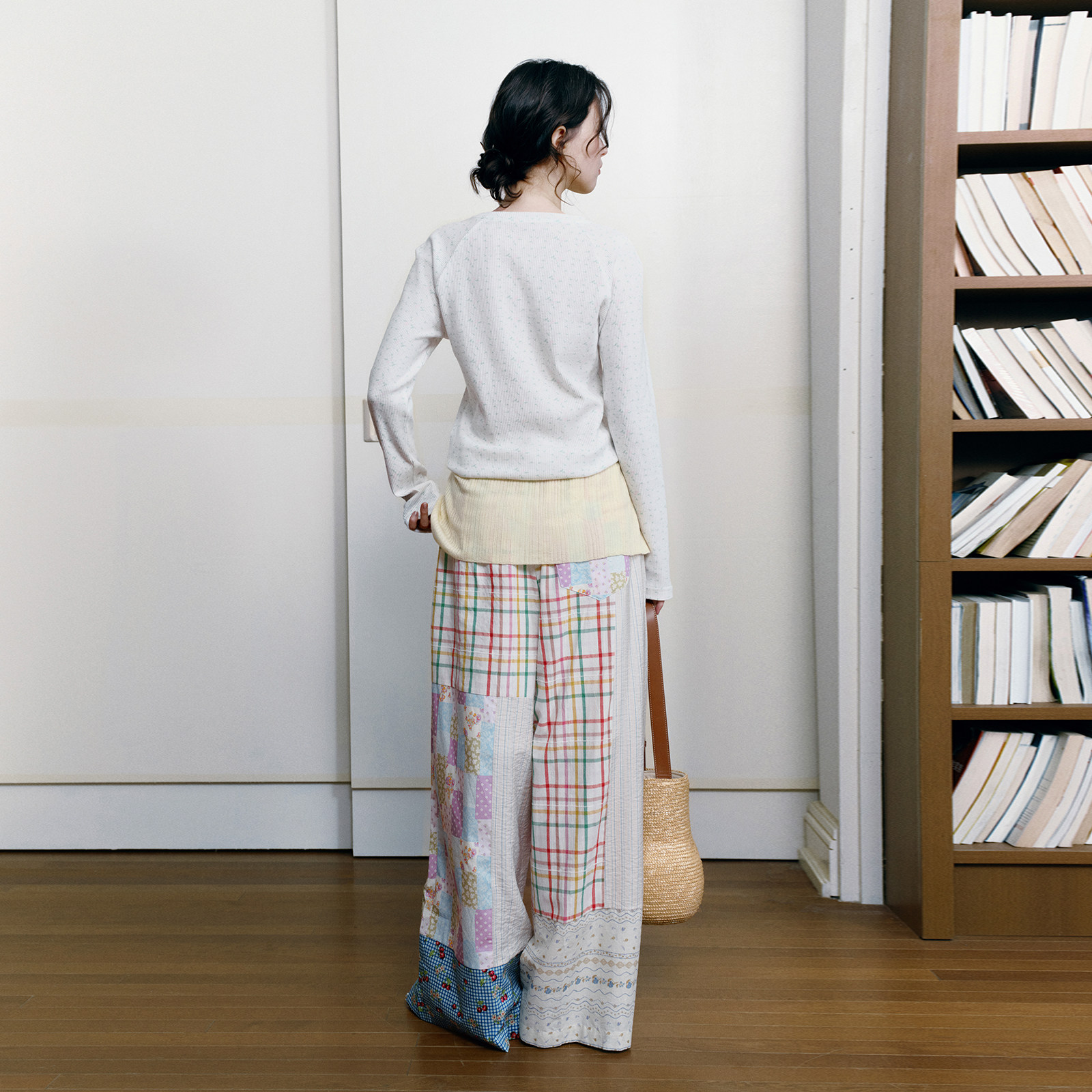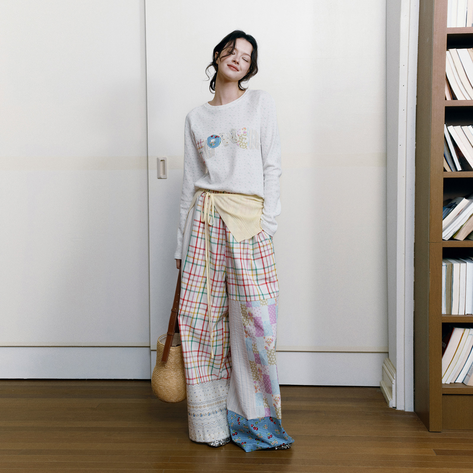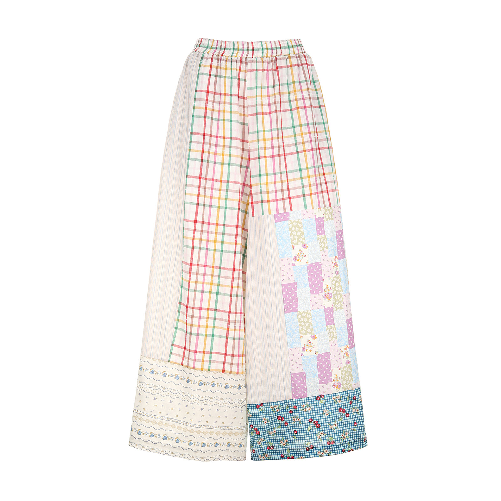 try拼色趣味拼接彩格阔腿长裤 女裤 春季 减龄休闲日常个性 新款 wana