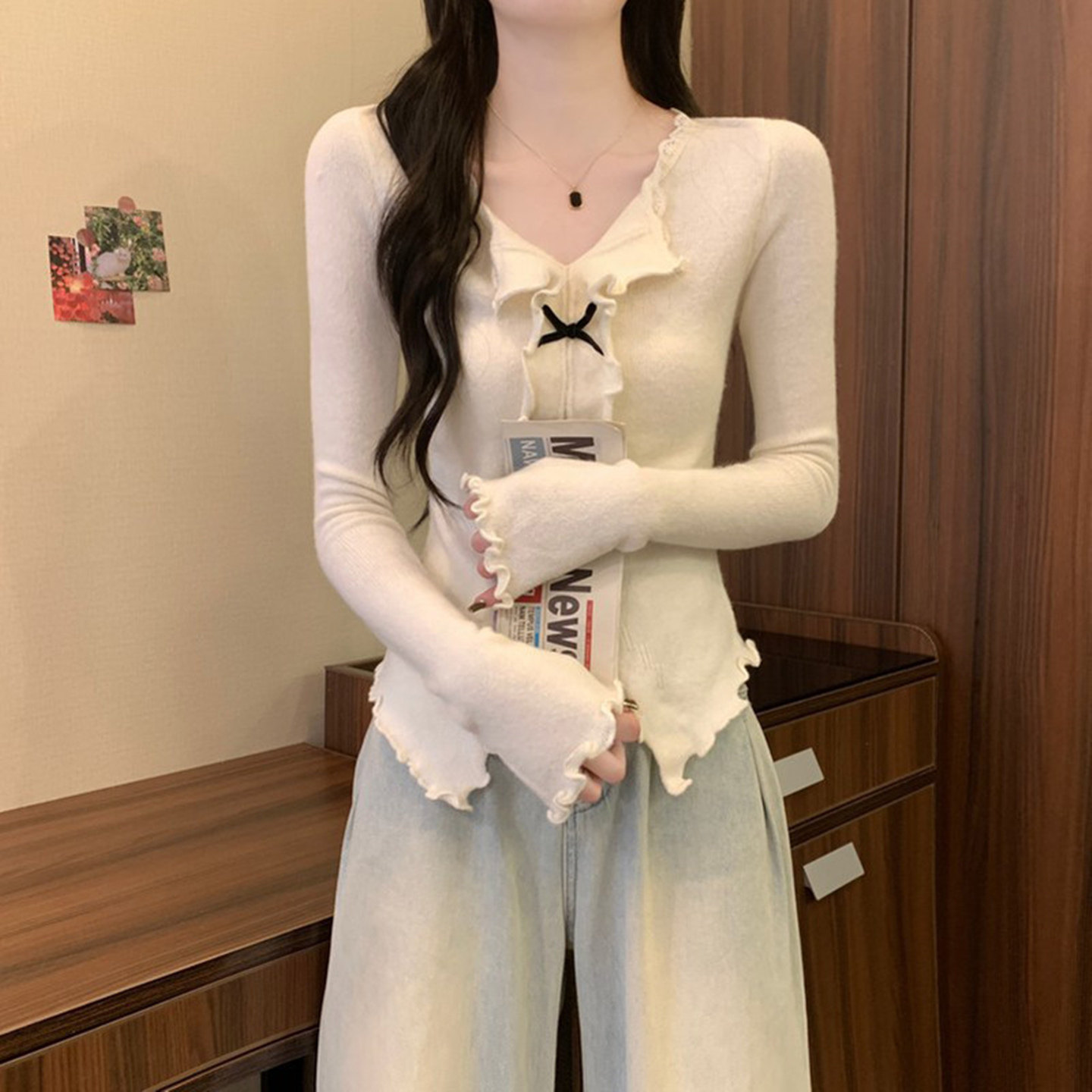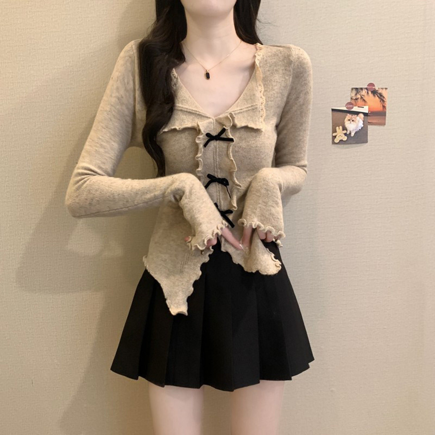 安哥拉红v领针织衫 打底上衣 女内搭毛衣春秋冬设计高级感外穿长袖