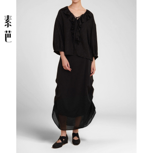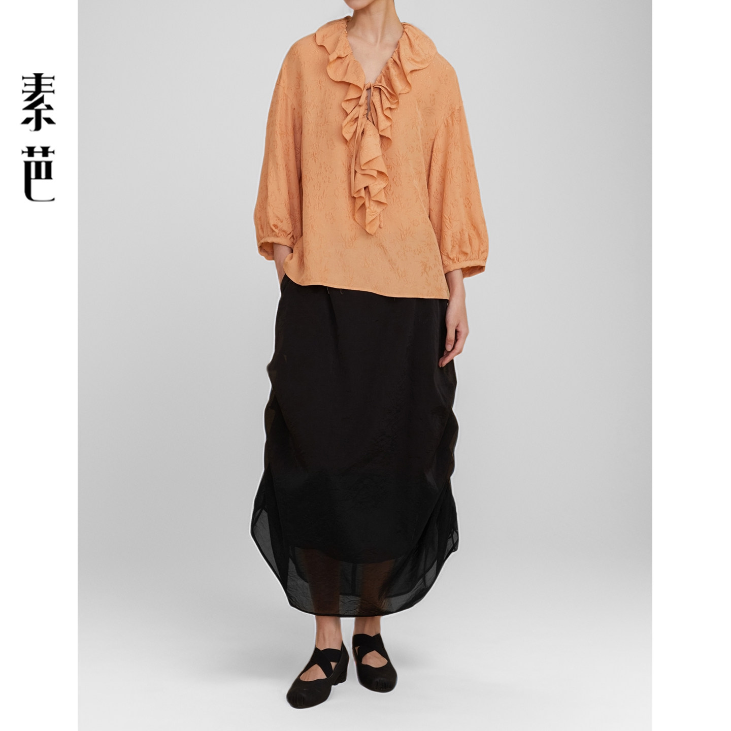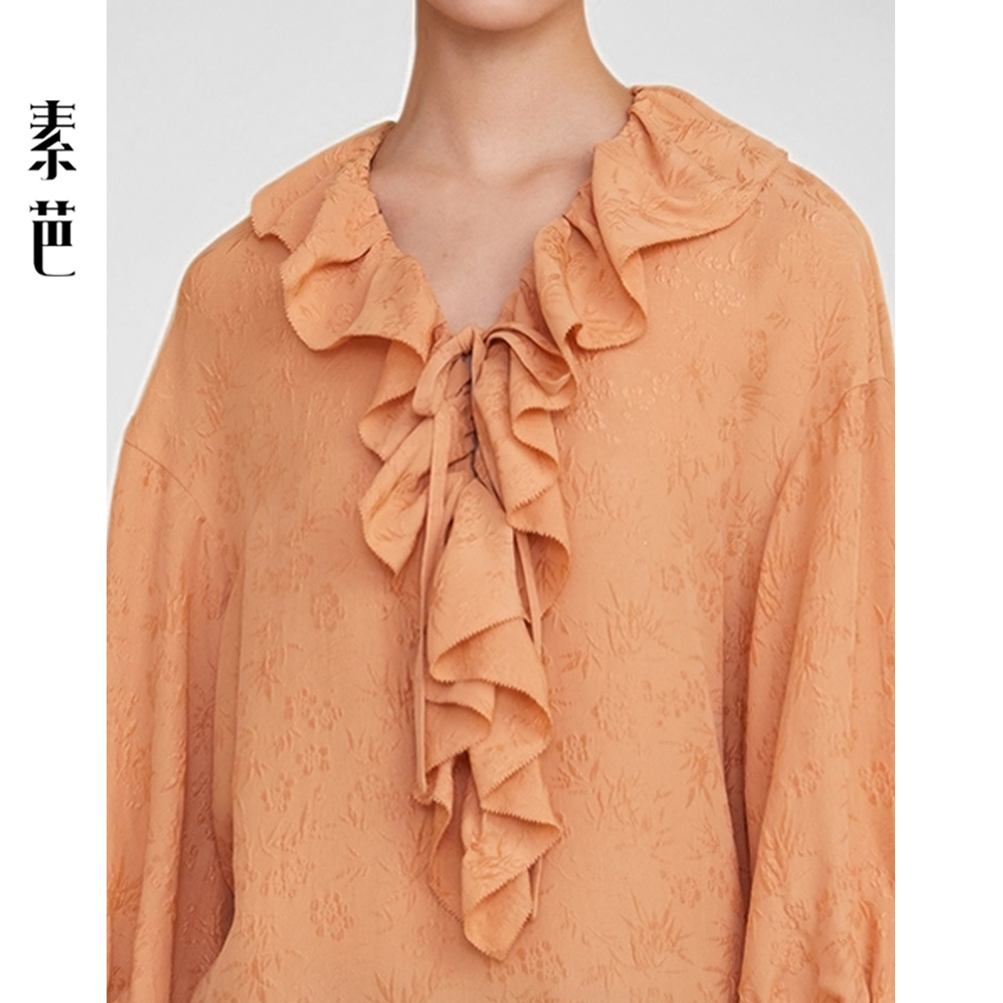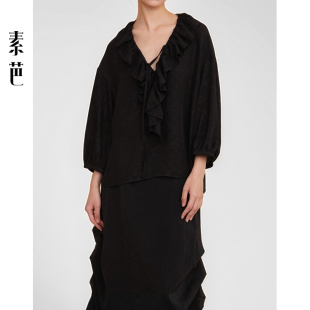 SS0965 V领休闲百搭气质衬衫 素芭新国风提花荷叶领上衣女春季 时尚