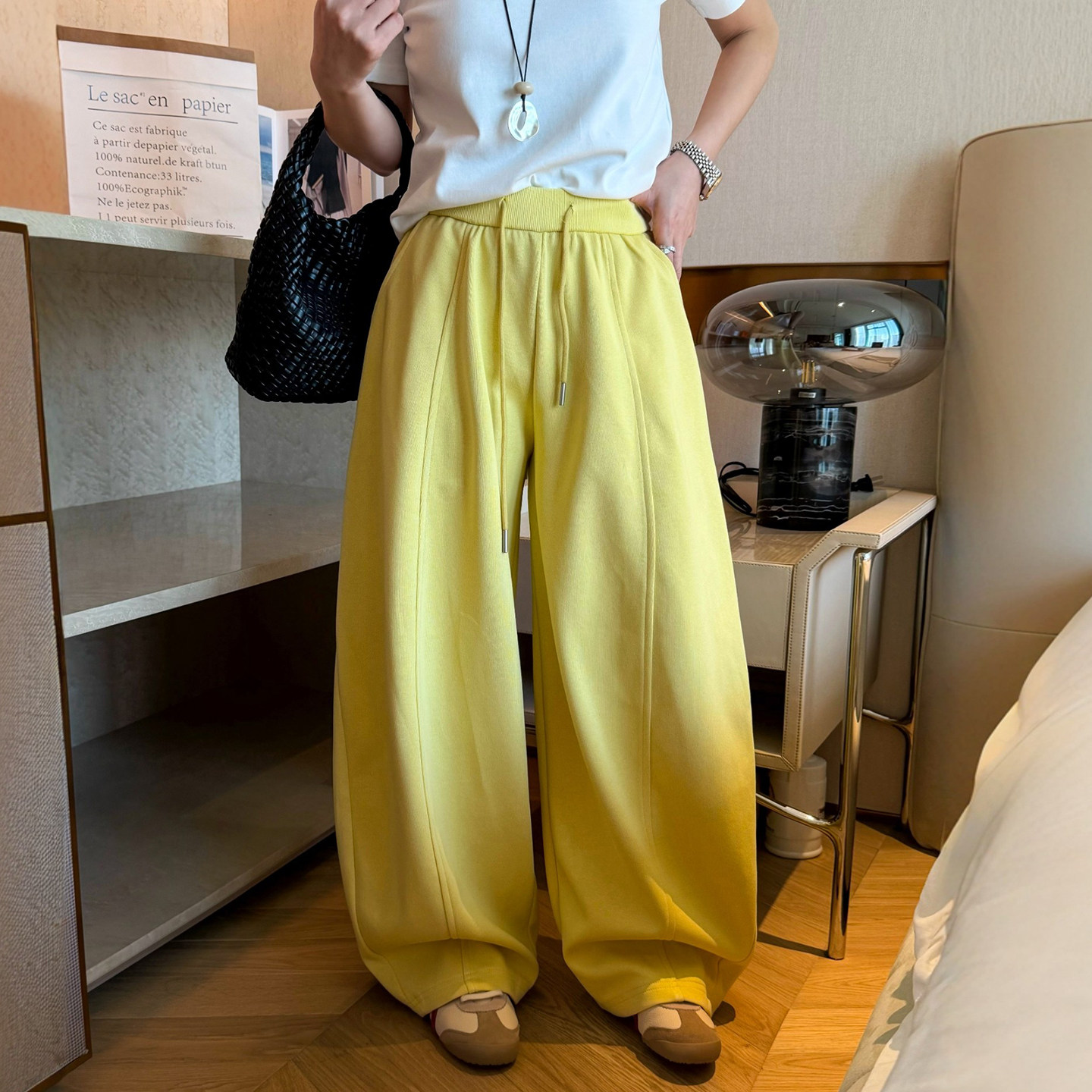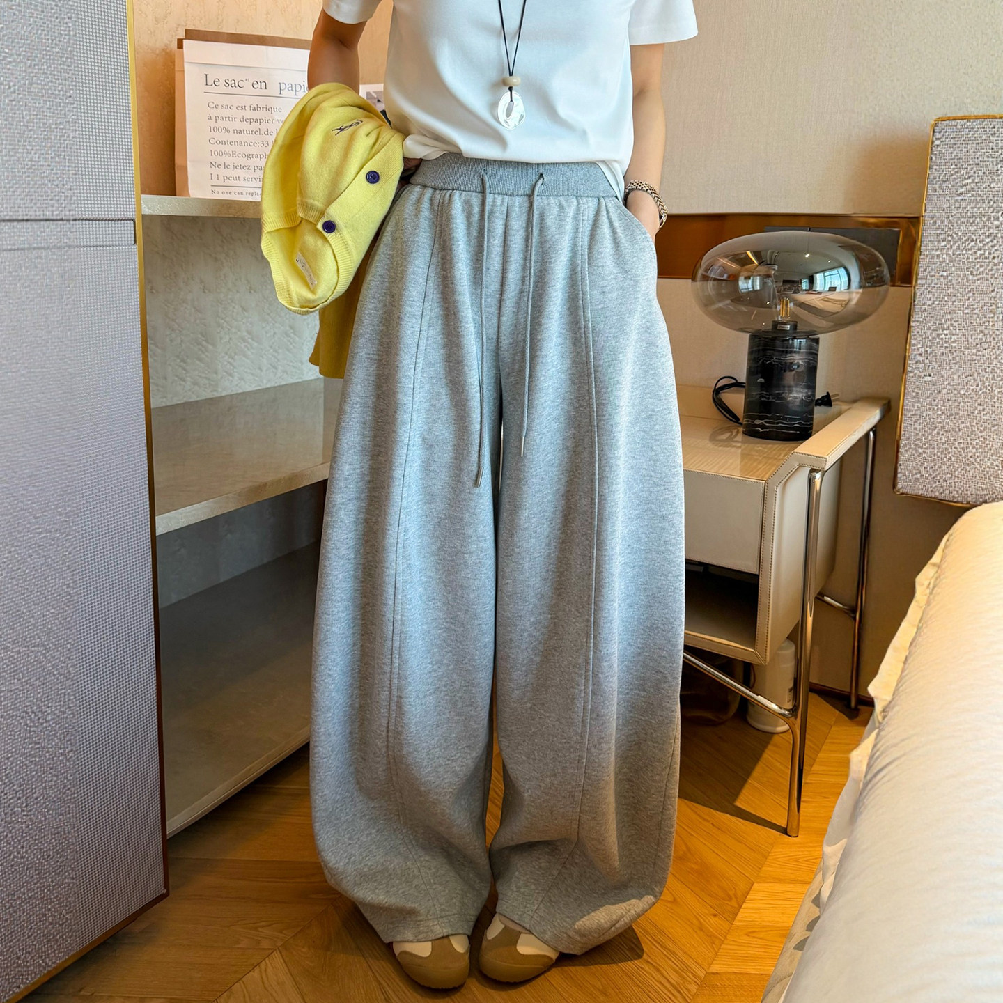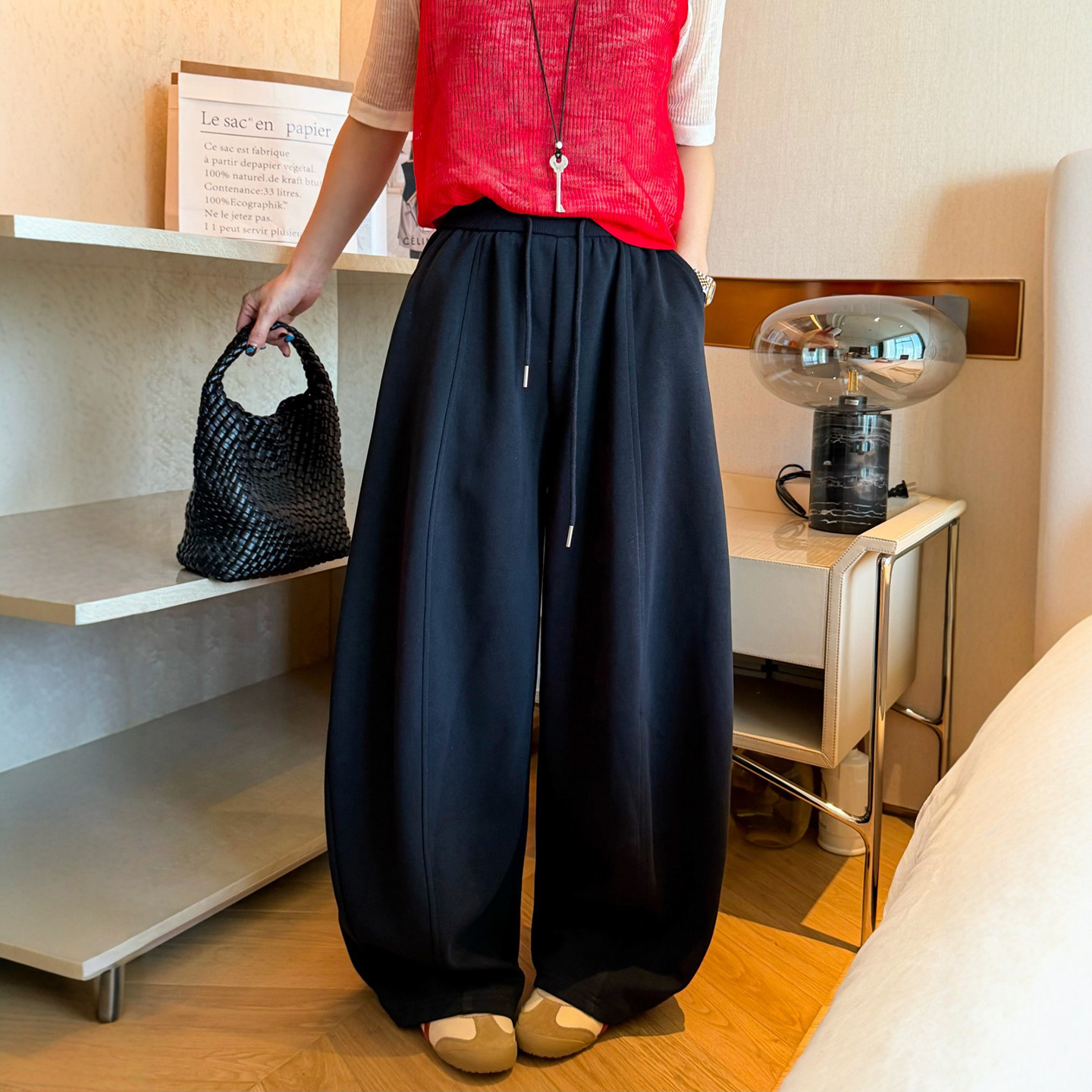 女欧洲站2026春装 休闲裤 新款 时尚 潮 欧货女装 抽绳系带拖地阔腿卫裤