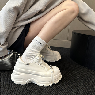 板鞋 WSWS|7cm显腿长韩版 女鞋 增高小白鞋 尖货牛皮轻便休闲厚底鞋