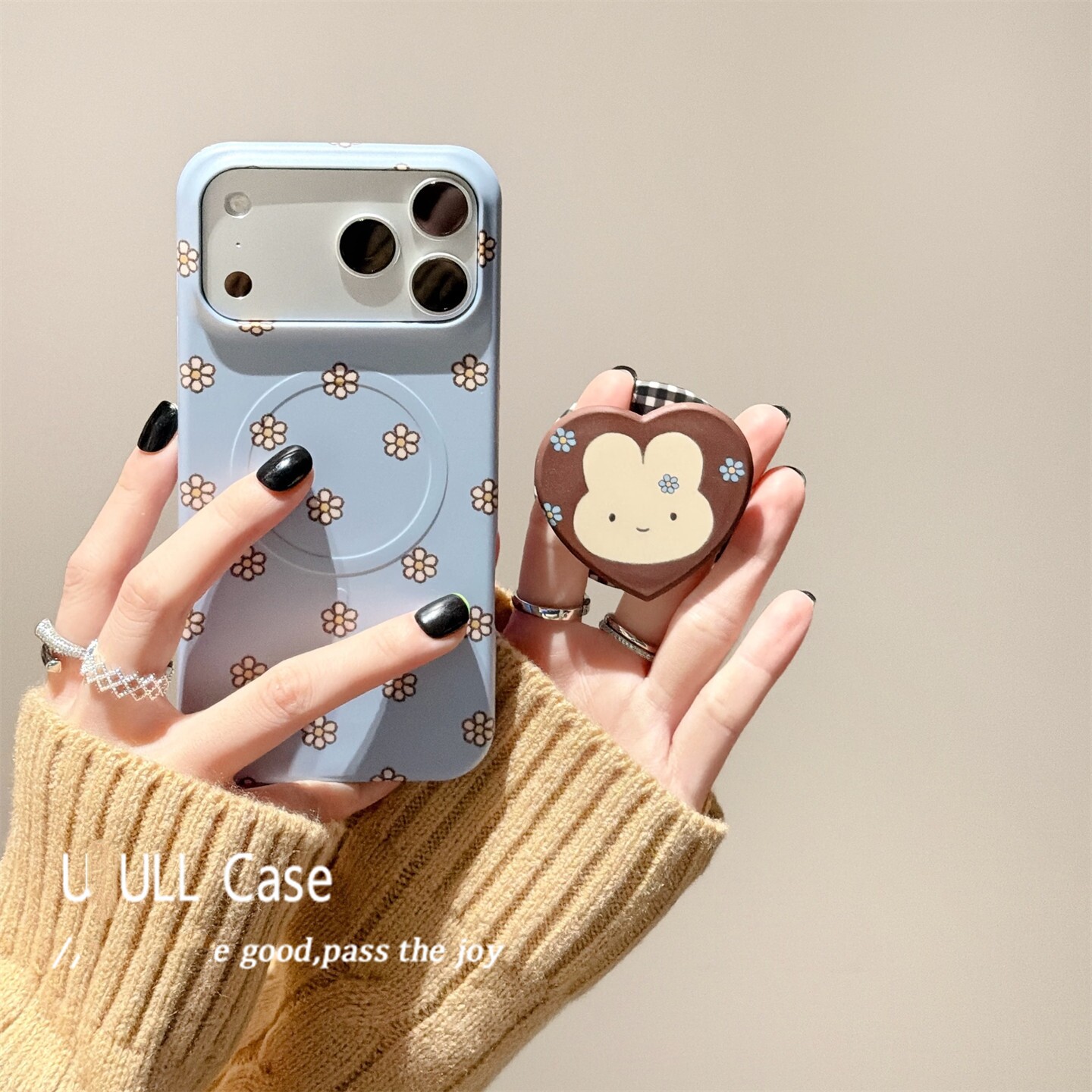 Z40Spro Z70 ZTE A51 蓝色花朵米菲兔磁吸支架适用努比亚Z60pro手机壳Z80 Z11高级MAX磨砂N2红魔11pro ULTRA